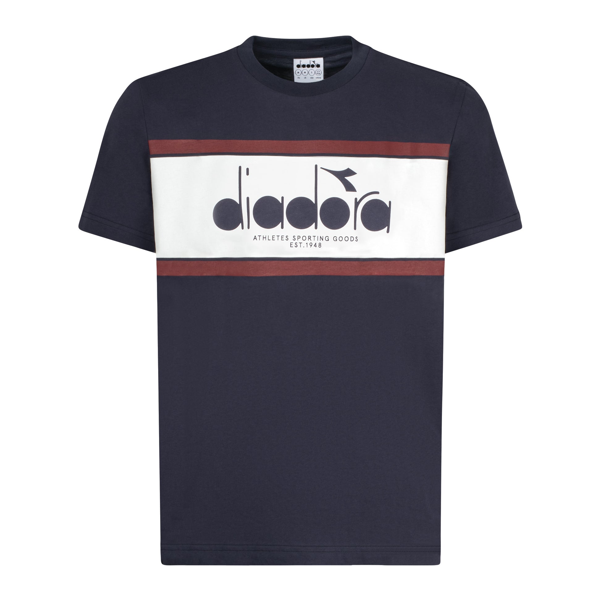 The Stripe logo T-Shirt in Navy & White by Diadora is available for purchase here at Urban Menswear.