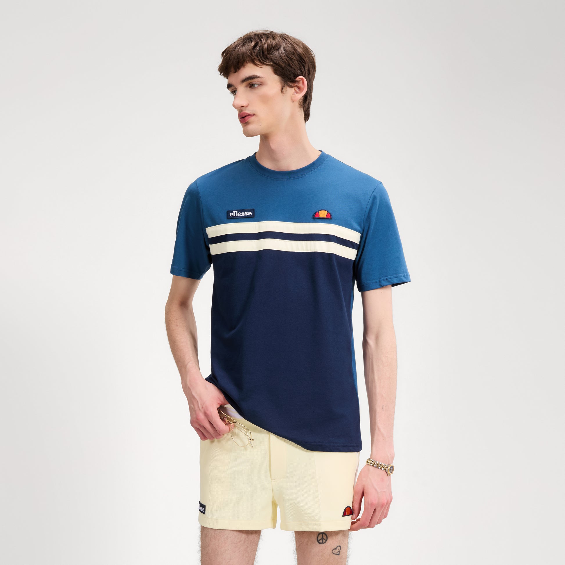 The "Venire" T-Shirt in Navy Blue & Yellow by Ellesse is available for purchase here at Urban Menswear.