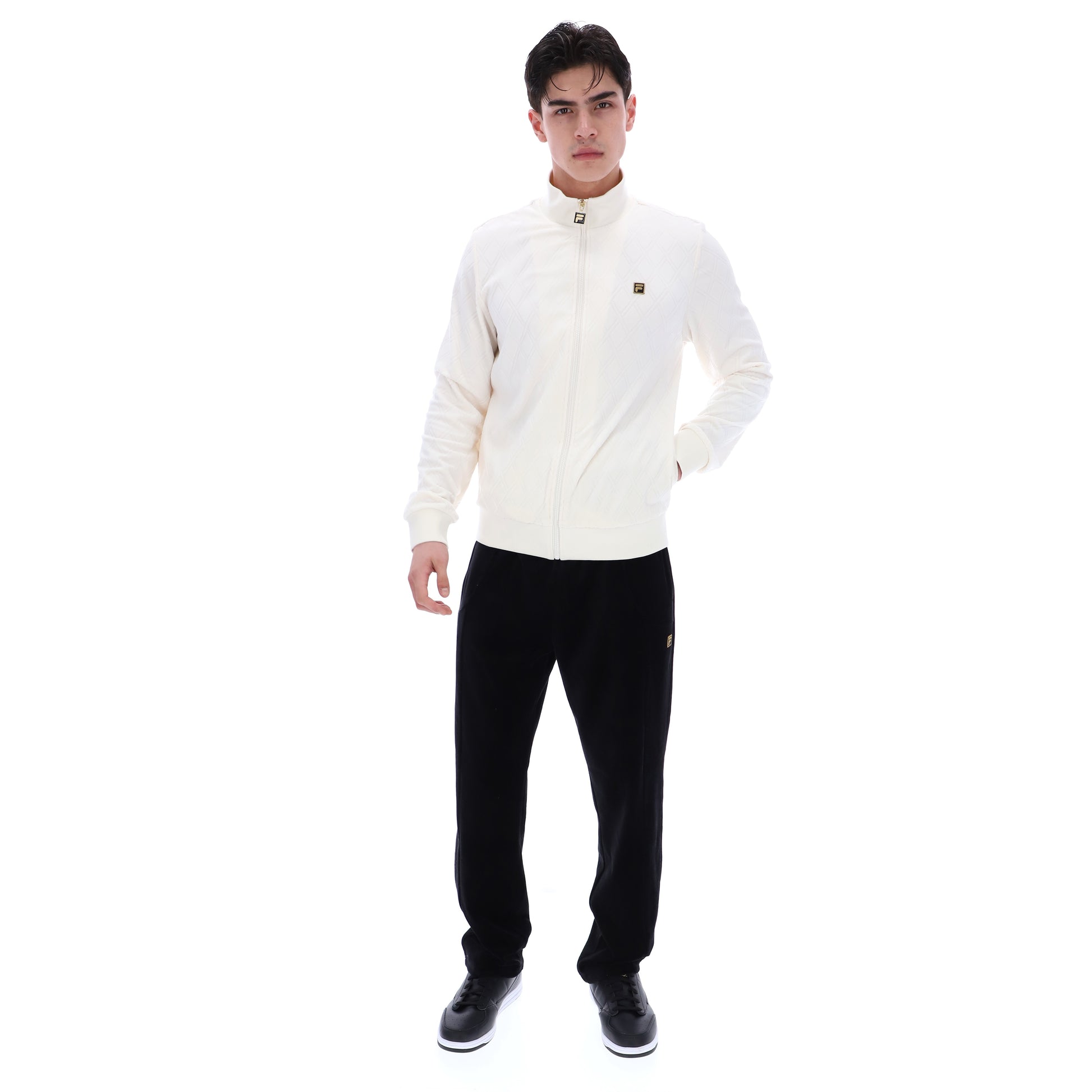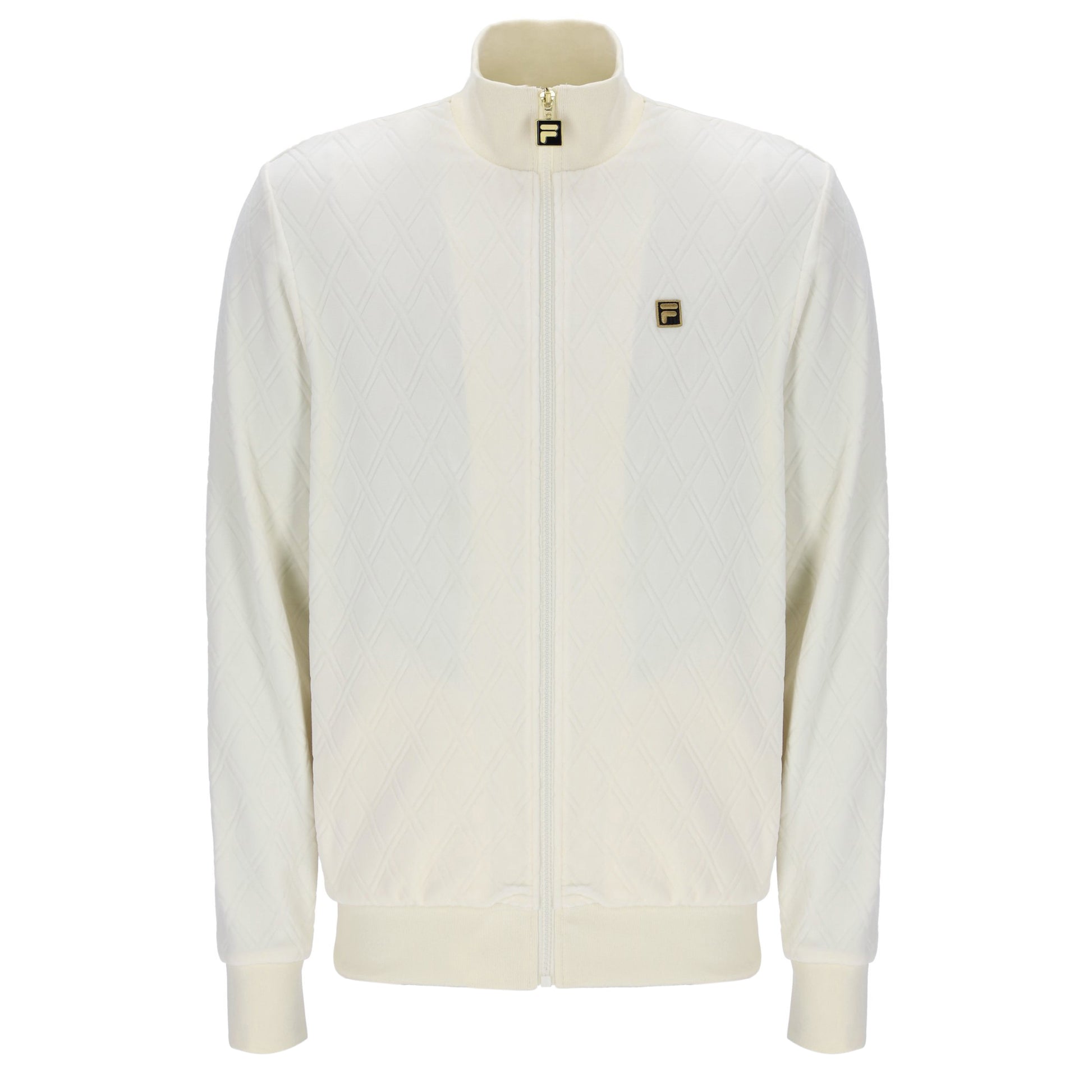 The "Hanay" Diamond Embossed Track Top in Coconut Milk (Cream) by Fila Gold is available for purchase here at Urban Menswear.
