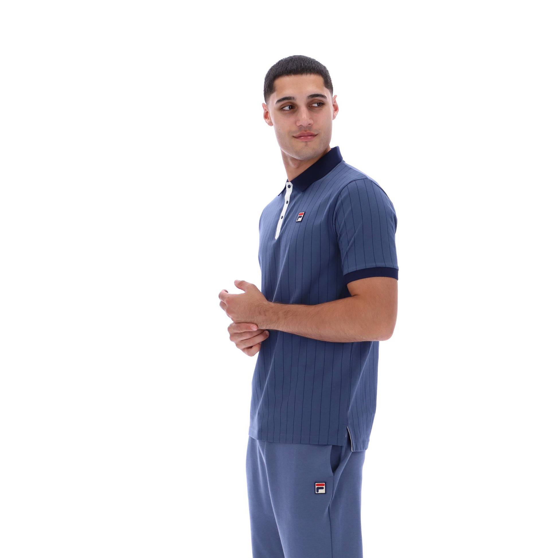 The "BB1" Striped Polo Shirt by Fila Vintage in Vintage Indigo Blue is available for purchase here at Urban Menswear.