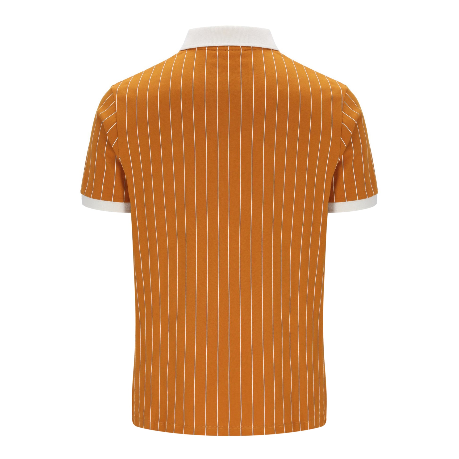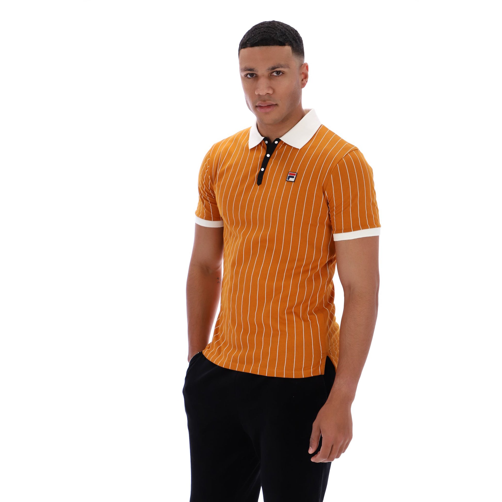 The "BB1" Striped Polo Shirt by Fila Vintage in Pumpkin Orange is available for purchase here at Urban Menswear.