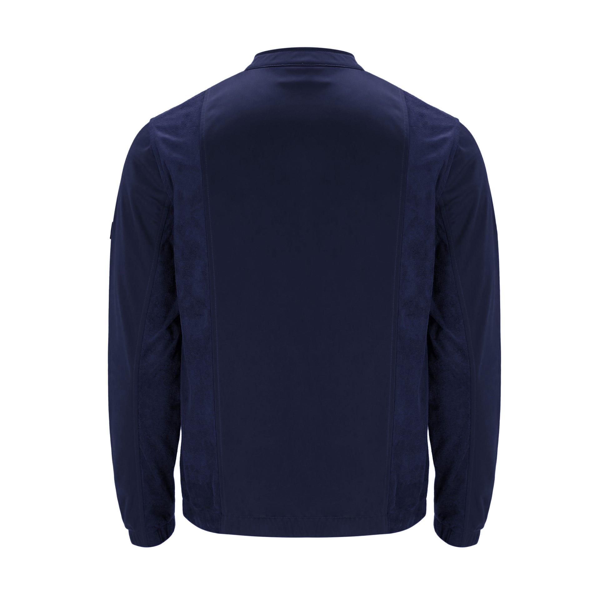An updated take on a casual classic silhouette, the boxer track jacket. Crafted with a cut & sew panelled torso with suede inserts. Finished with the angled fastening biker style collar, branded sleeve and full zip front.