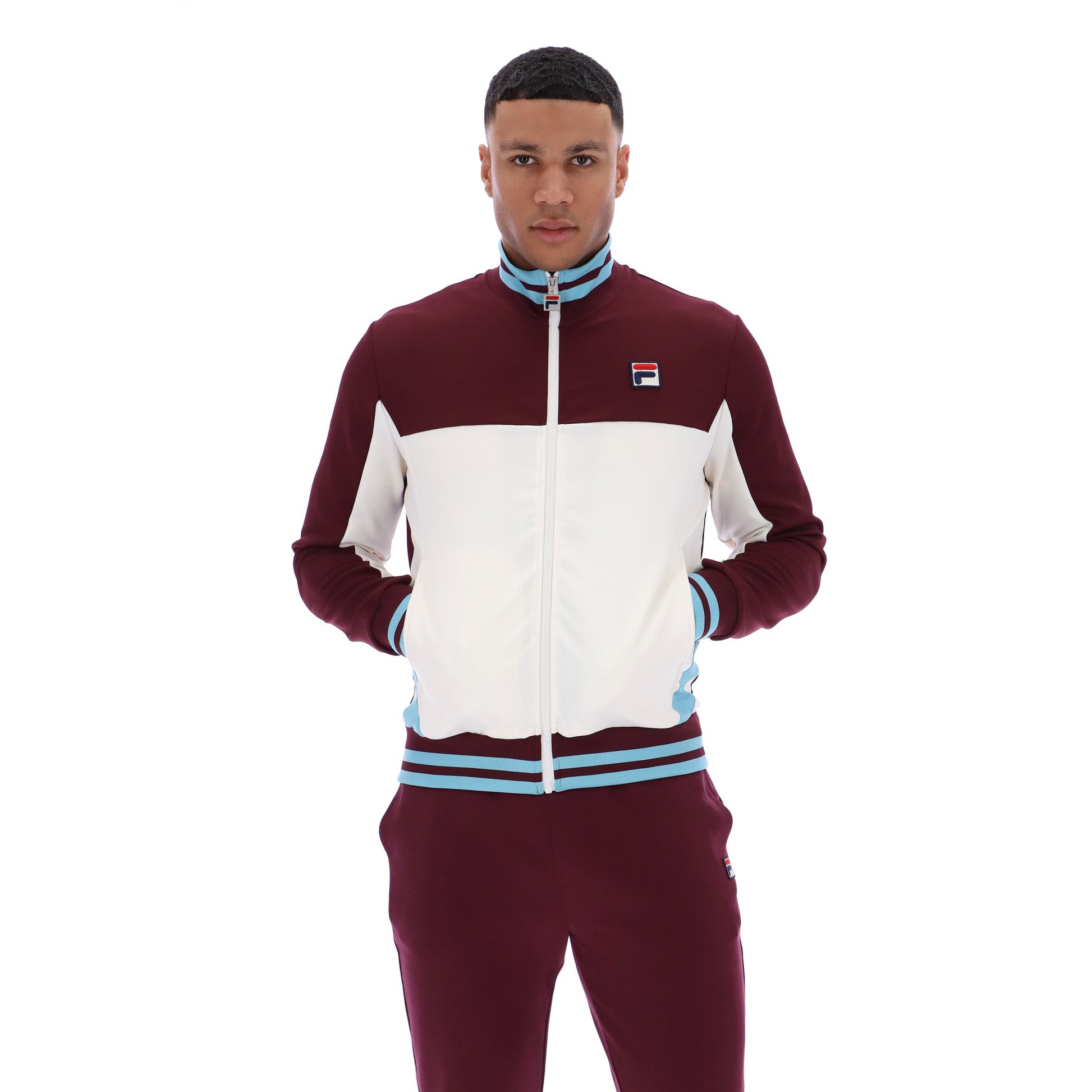 A returning favourite from the previous winter collection. Crafted in the iconic track top silhouette sporting a colour block design. Finished with Striped Cuff detail, Fila Pro Badge Branding, Side Pockets & a funnel neckline.