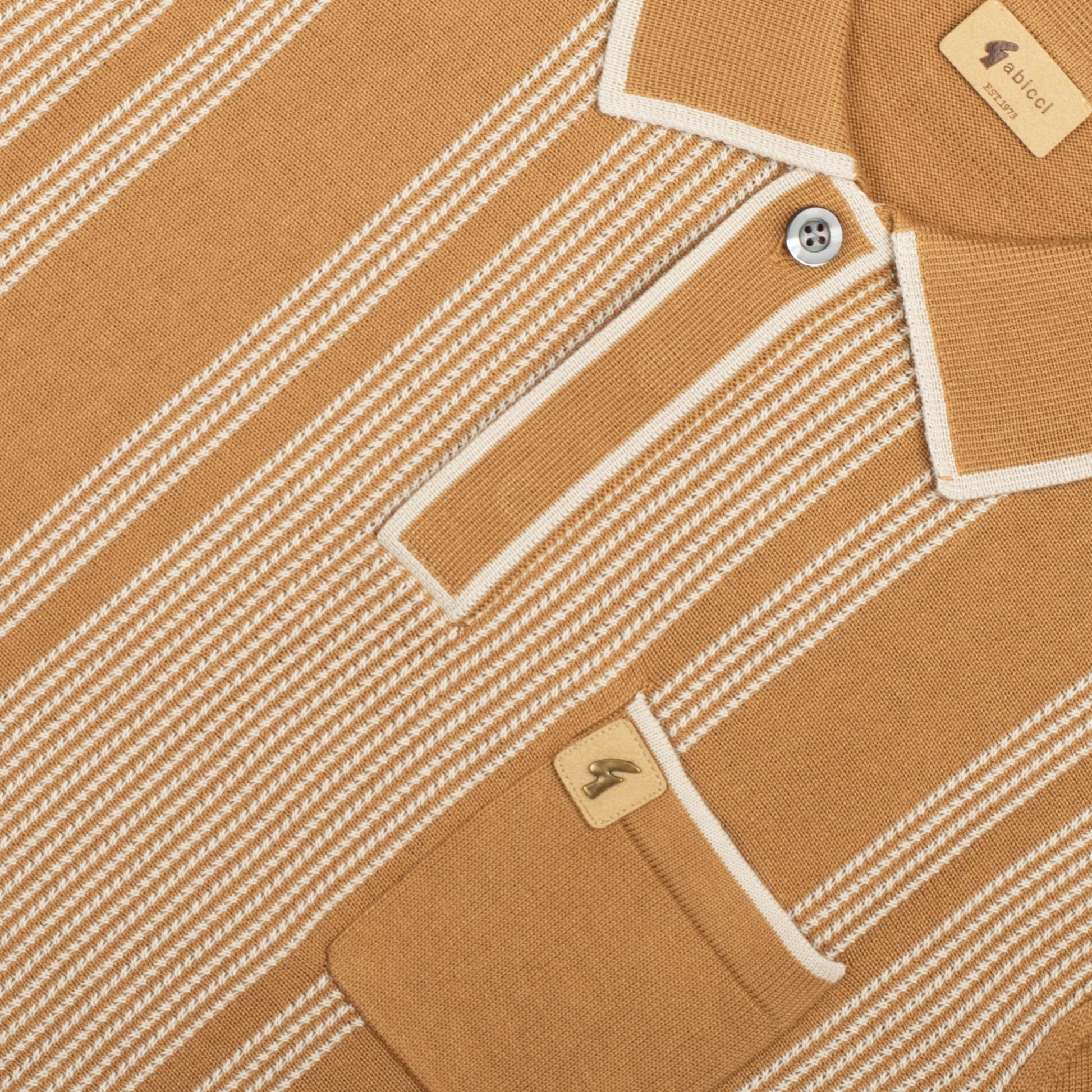 The Gabicci Vintage "Dante" Knitted Polo Shirt in Nutmeg (Beige) is available for purchase here at Urban Menswear.