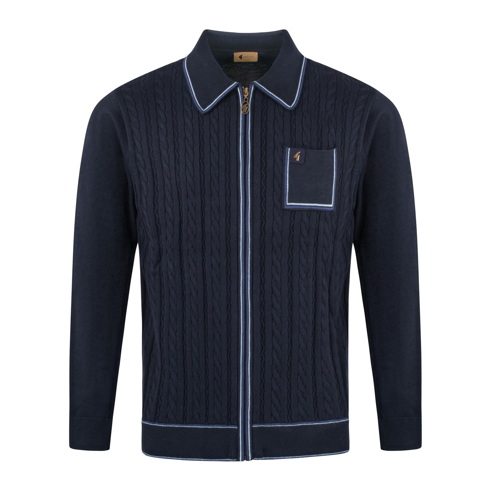 The "Laverene" Zip Knitted Shirt in Navy Blue by Gabicci Vintage is available for purchase here at Urban Menswear.