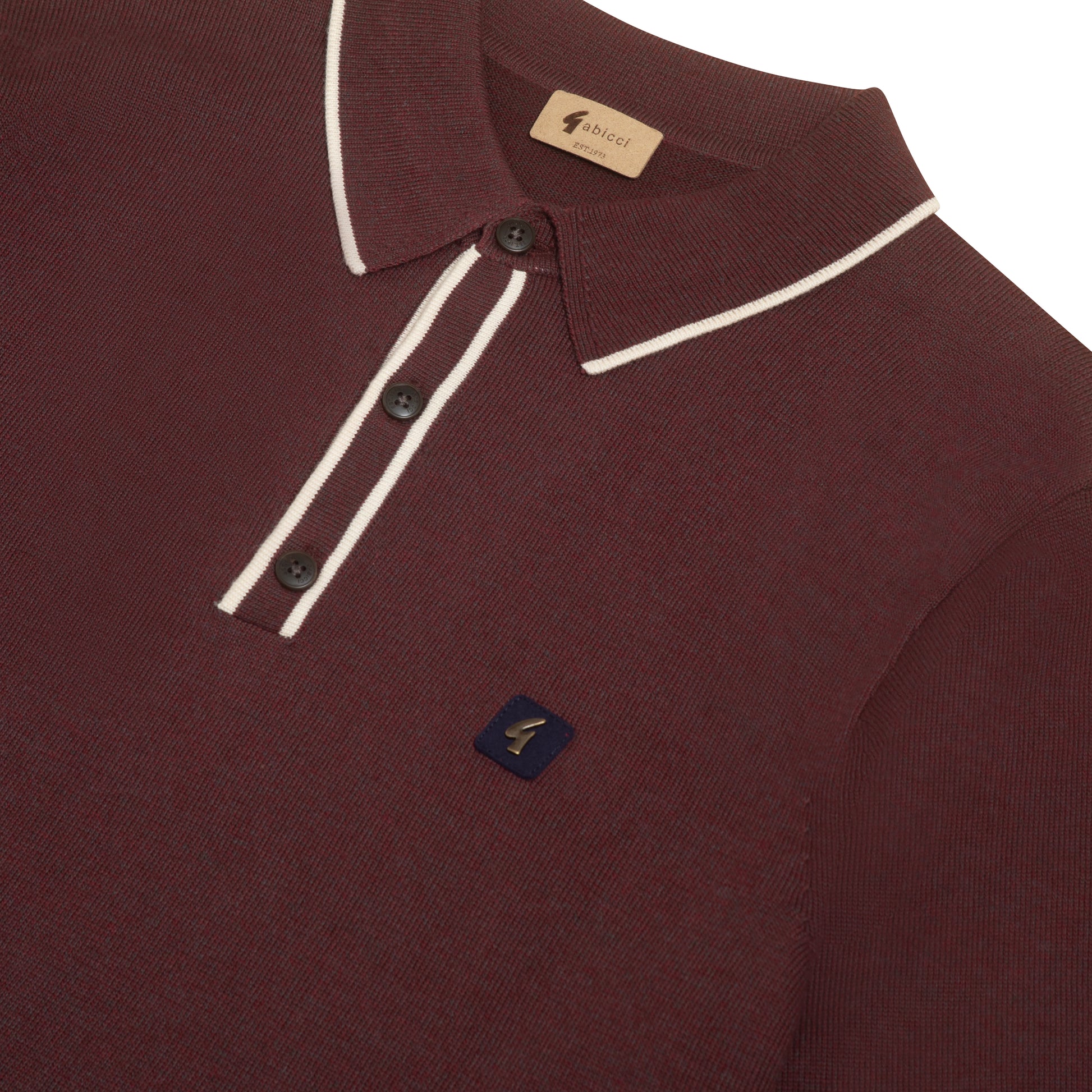 The Gabicci Vintage "Lineker" Knitted Tipped Polo Shirt in Berry is available for purchase here at Urban Menswear.