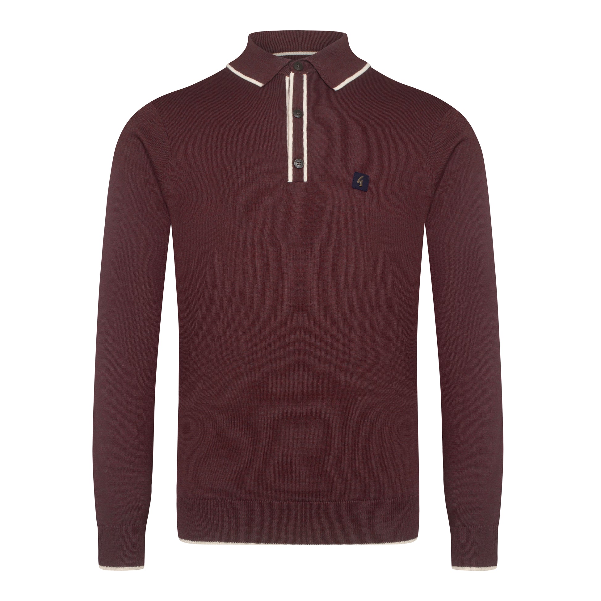 - Gabicci Vintage "Lineker" Knitted Polo Shirt in Berry