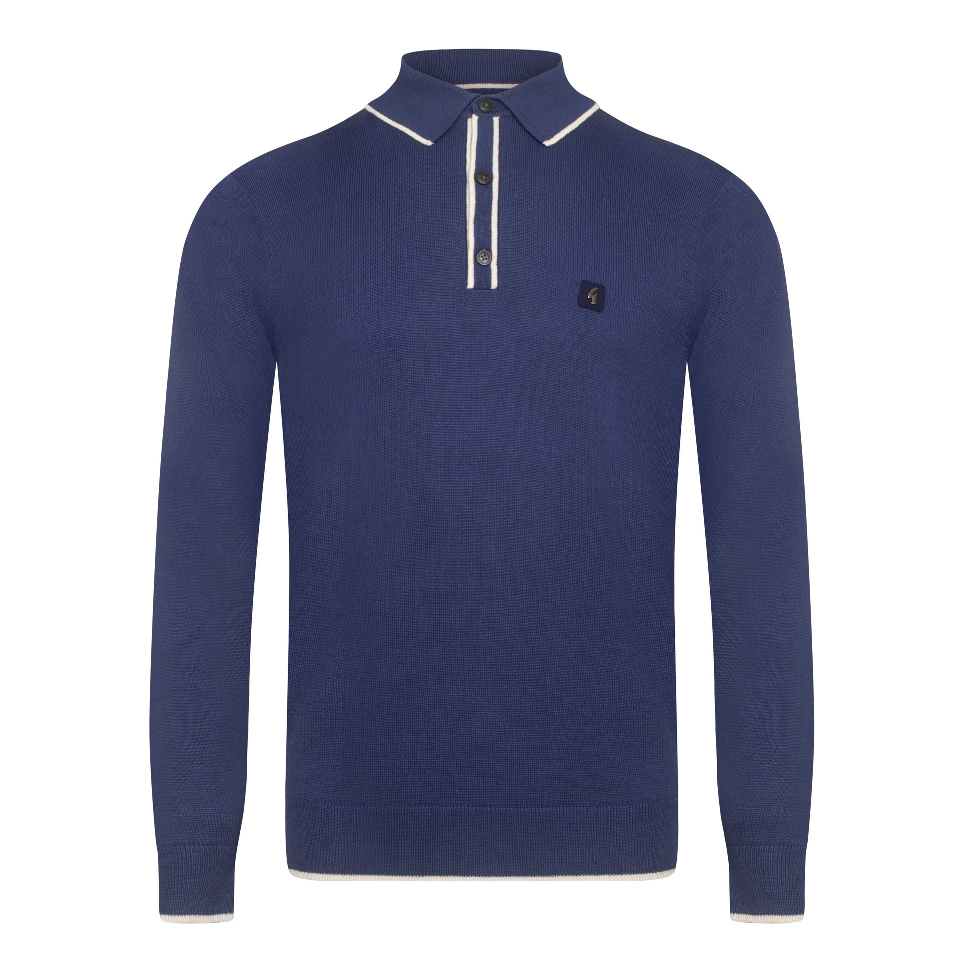 - Gabicci Vintage "Lineker" Knitted Polo Shirt in Storm Blue