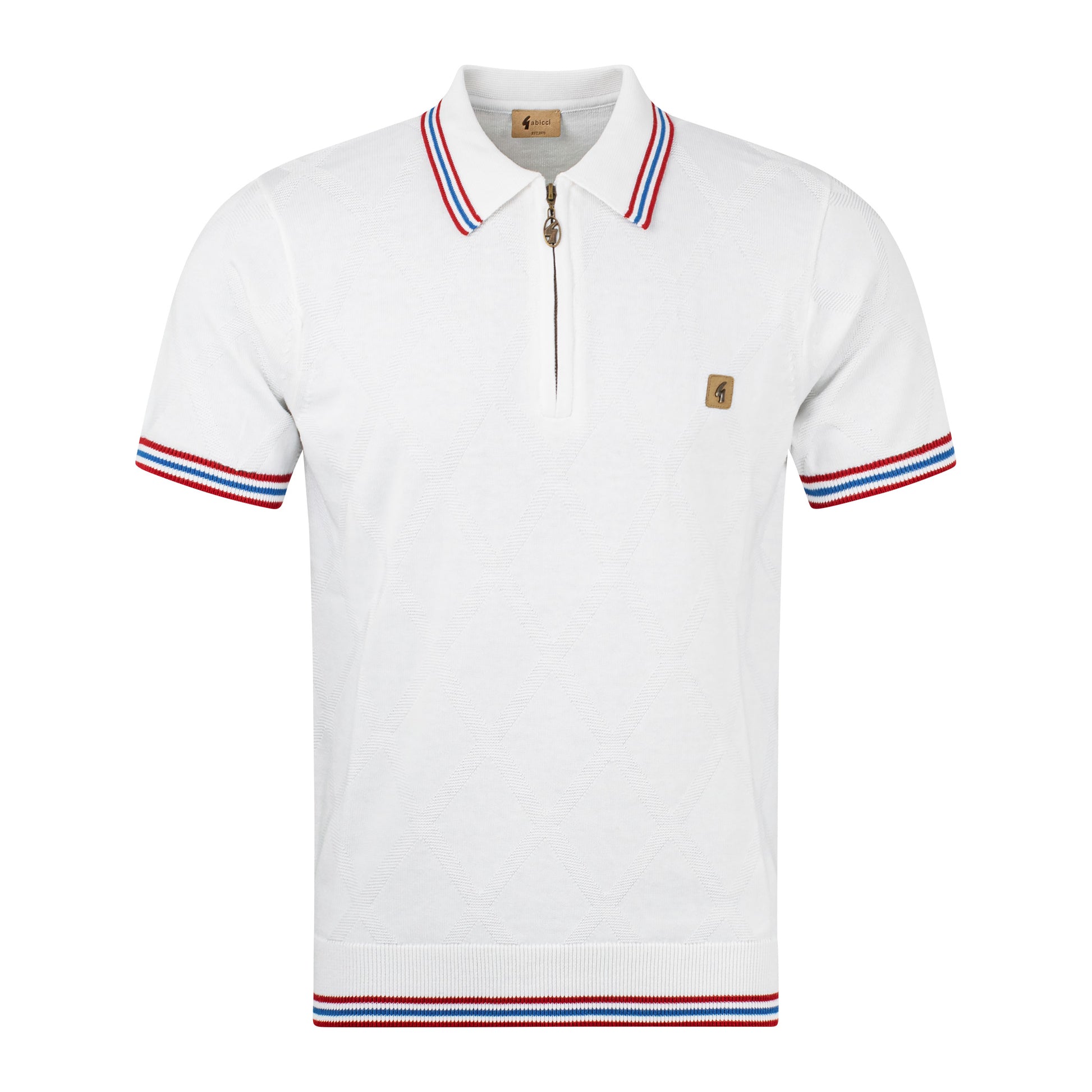 The Gabicci Vintage "Moore" Argyle Knitted Polo Shirt in White is available for purchase here at Urban Menswear.