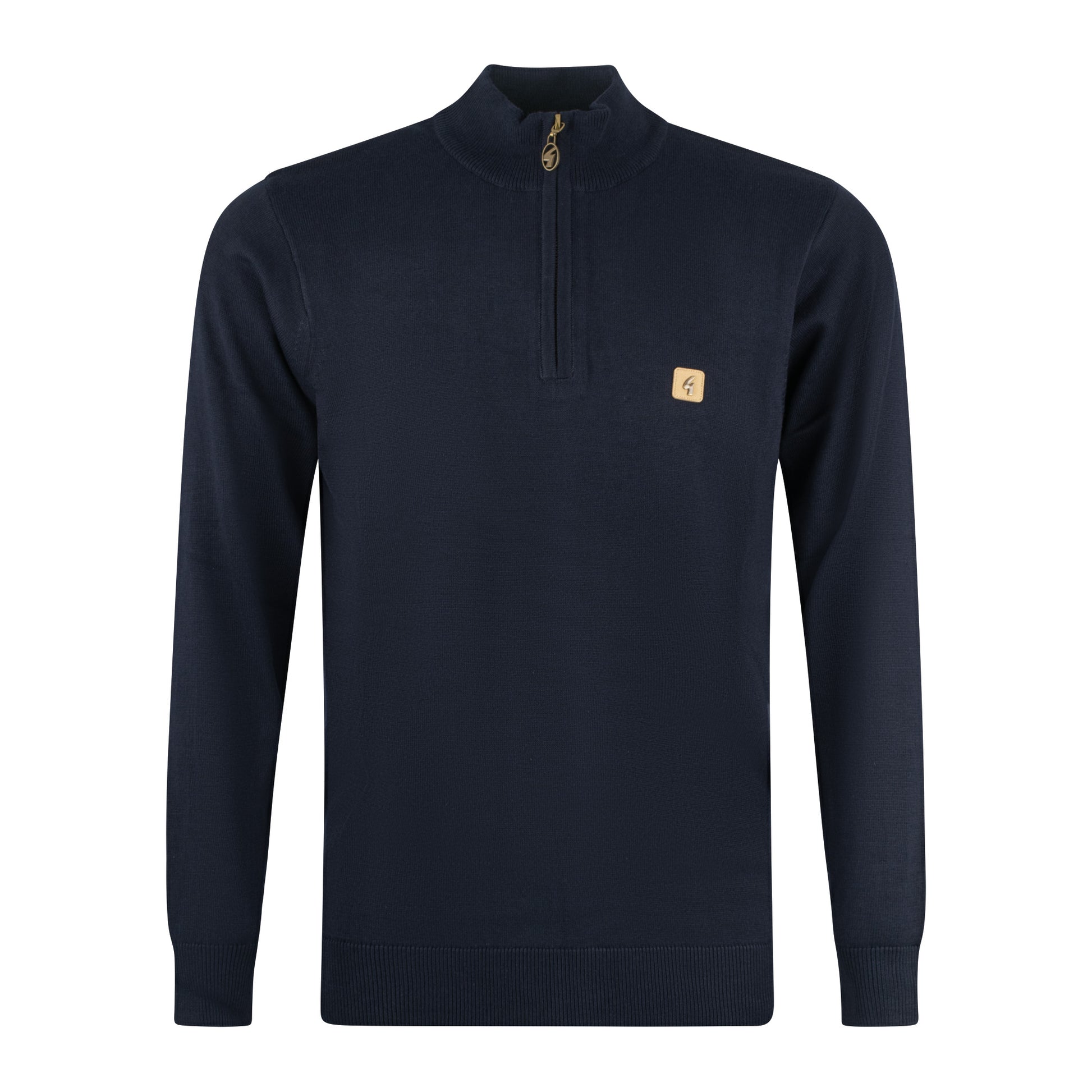 The Gabicci Vintage "Naxton" Knitted Quarter Zip Sweater in Navy is available for purchase here at Urban Menswear.
