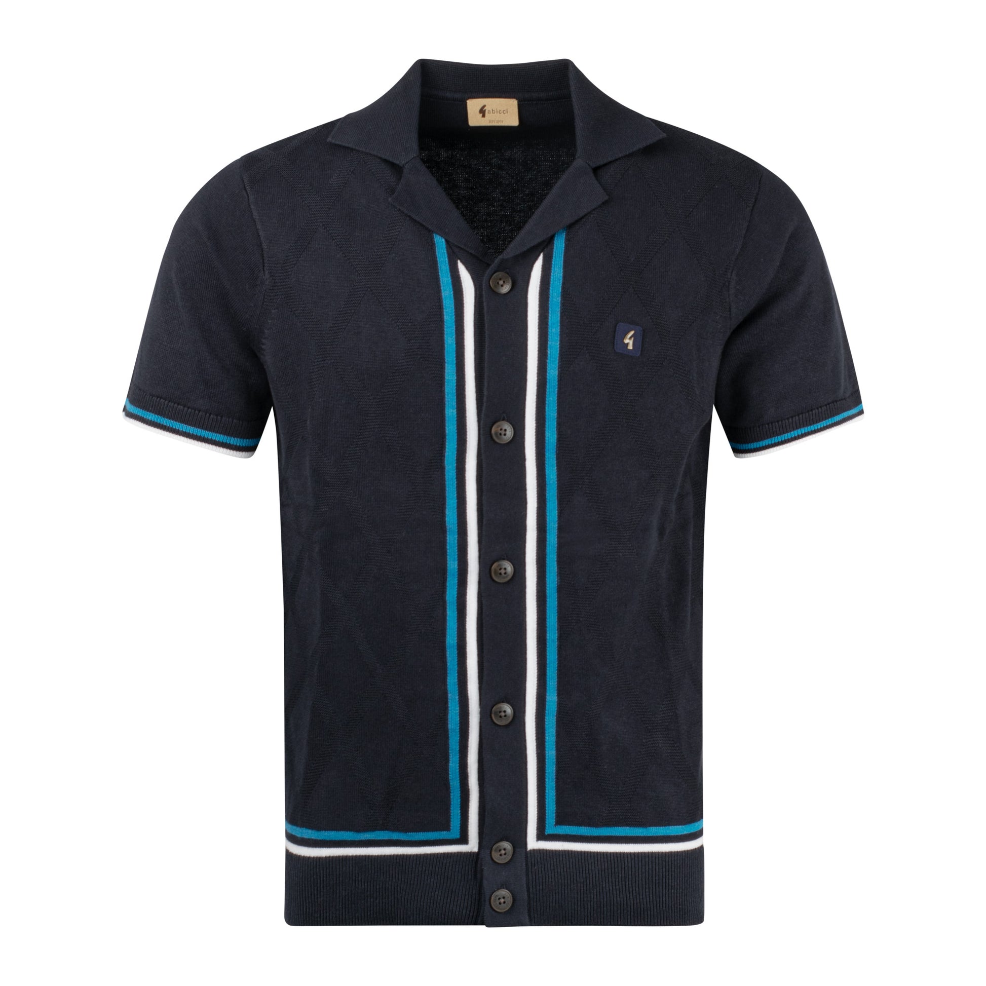 - Gabicci Vintage "Ross" Knitted Shirt in Navy