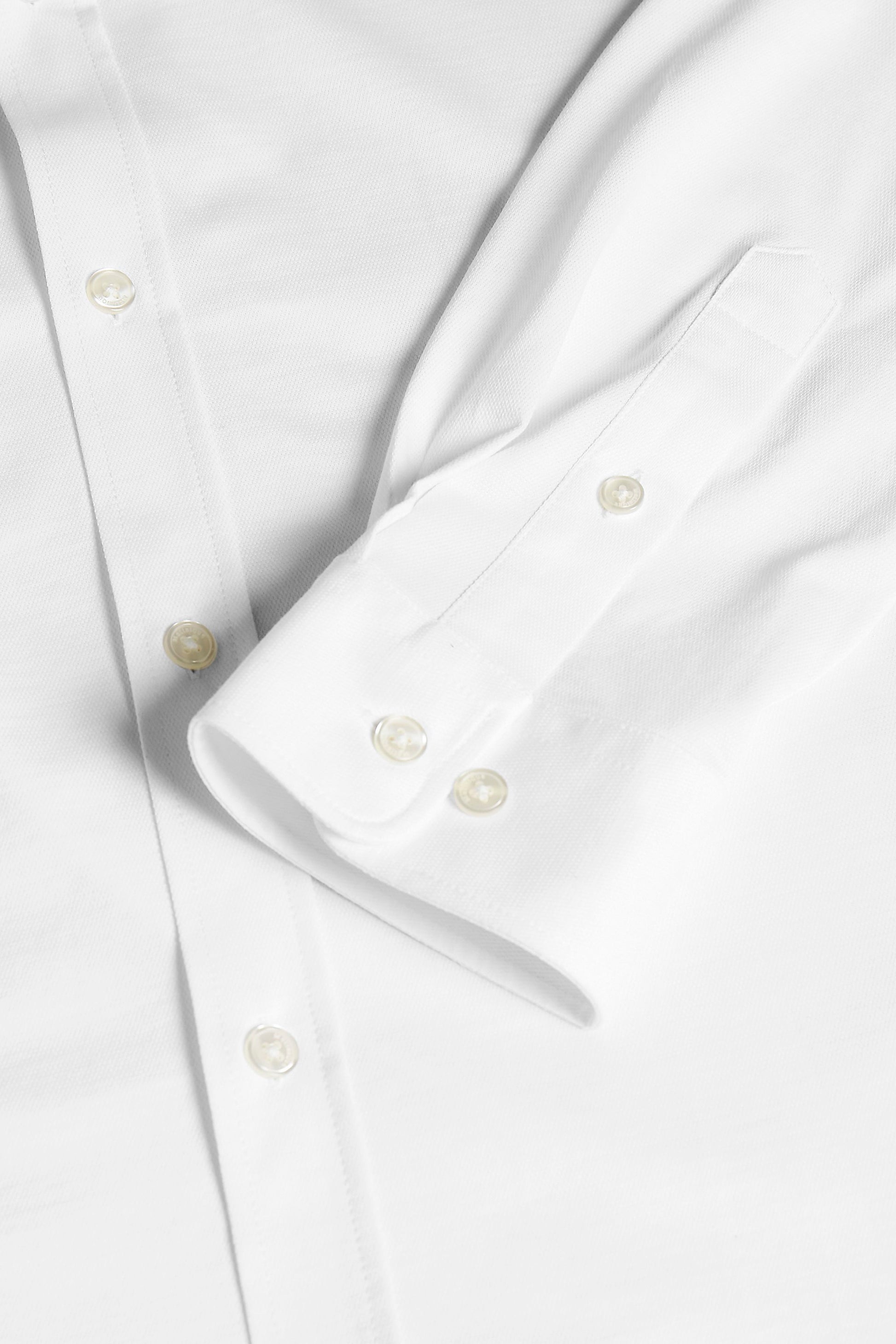 Crafted from a Cotton Blend Jersey fabric, perfect for maintaining the smart appearance of a shirt whilst keeping the comfort and dexterity of a T-Shirt. This garment truly must be worn to be appreciated. Finished with button sleeve cuffs and concealed under-collar button down.