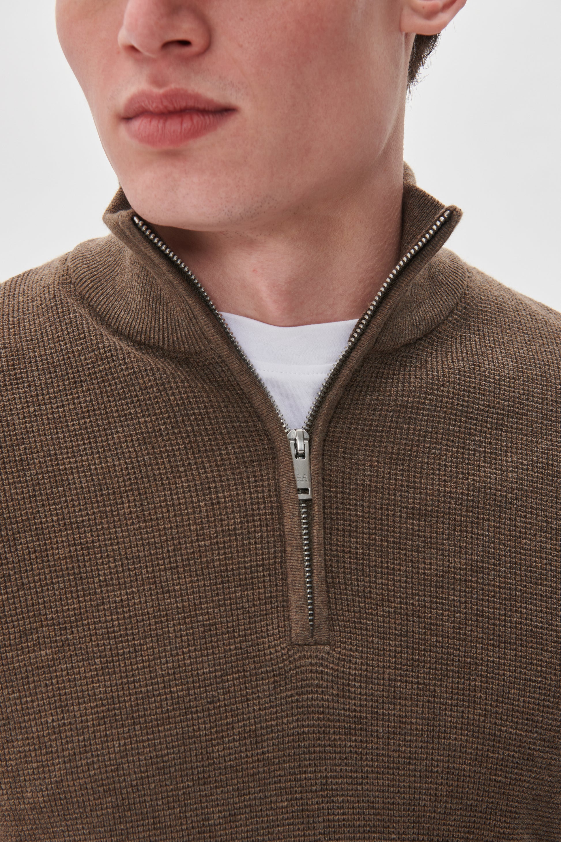 The "Lagoon" Textured Knit Sweater in Walnut Brown by Matinique is available for purchase here at Urban Menswear.