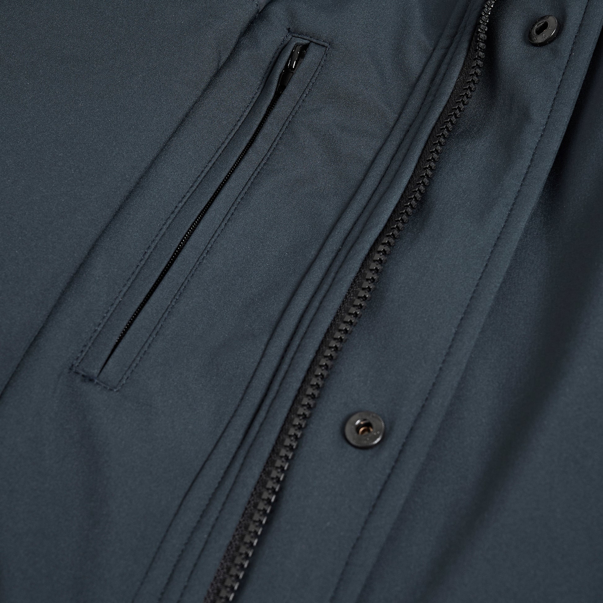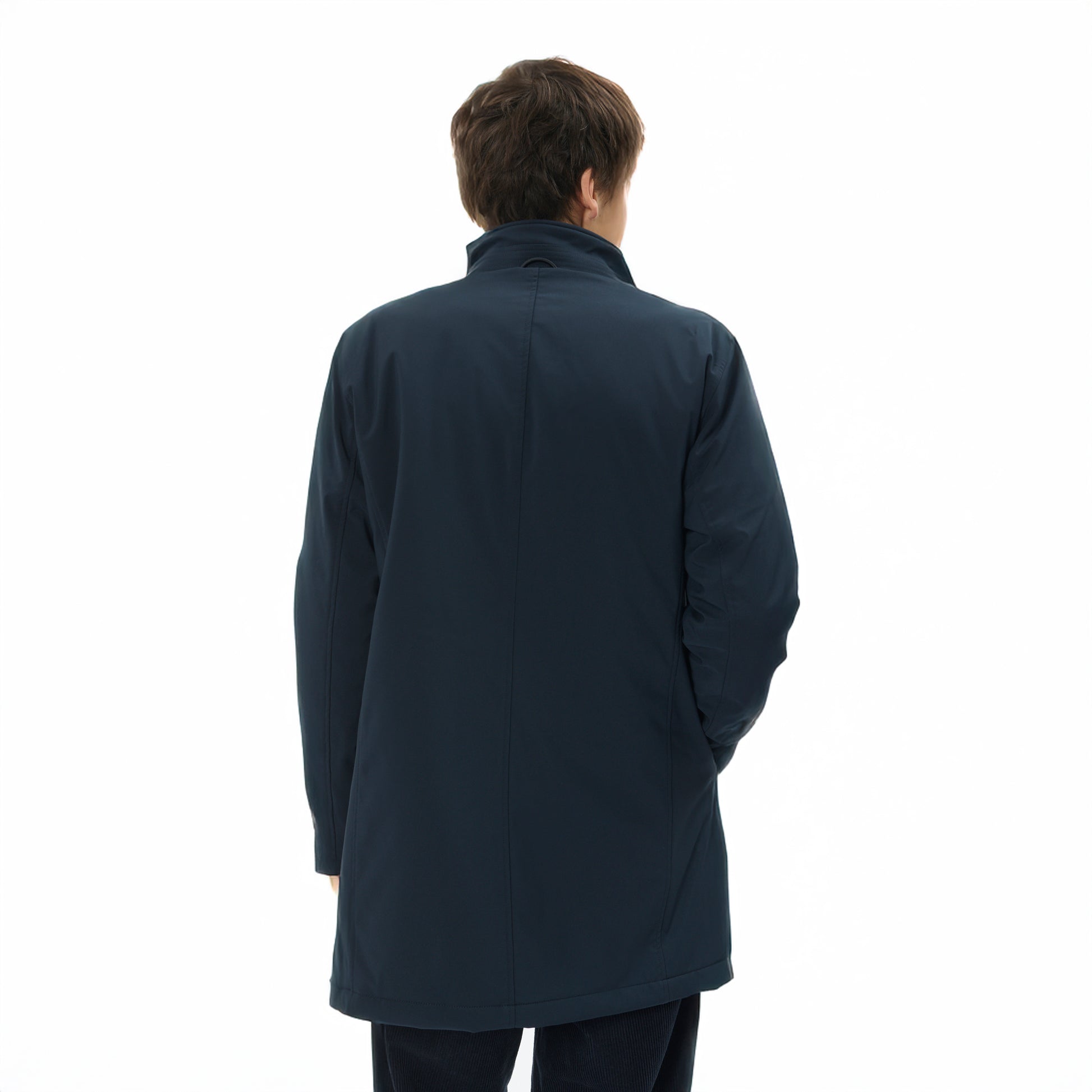 The perfect crossroad between style and versatility. Crafted in an overcoat silhouette finished in a technical outer shell with a winter quilted lining. Finished with two side pockets, inside pockets and a full zip front with button down concealing flap.