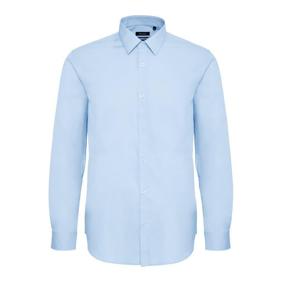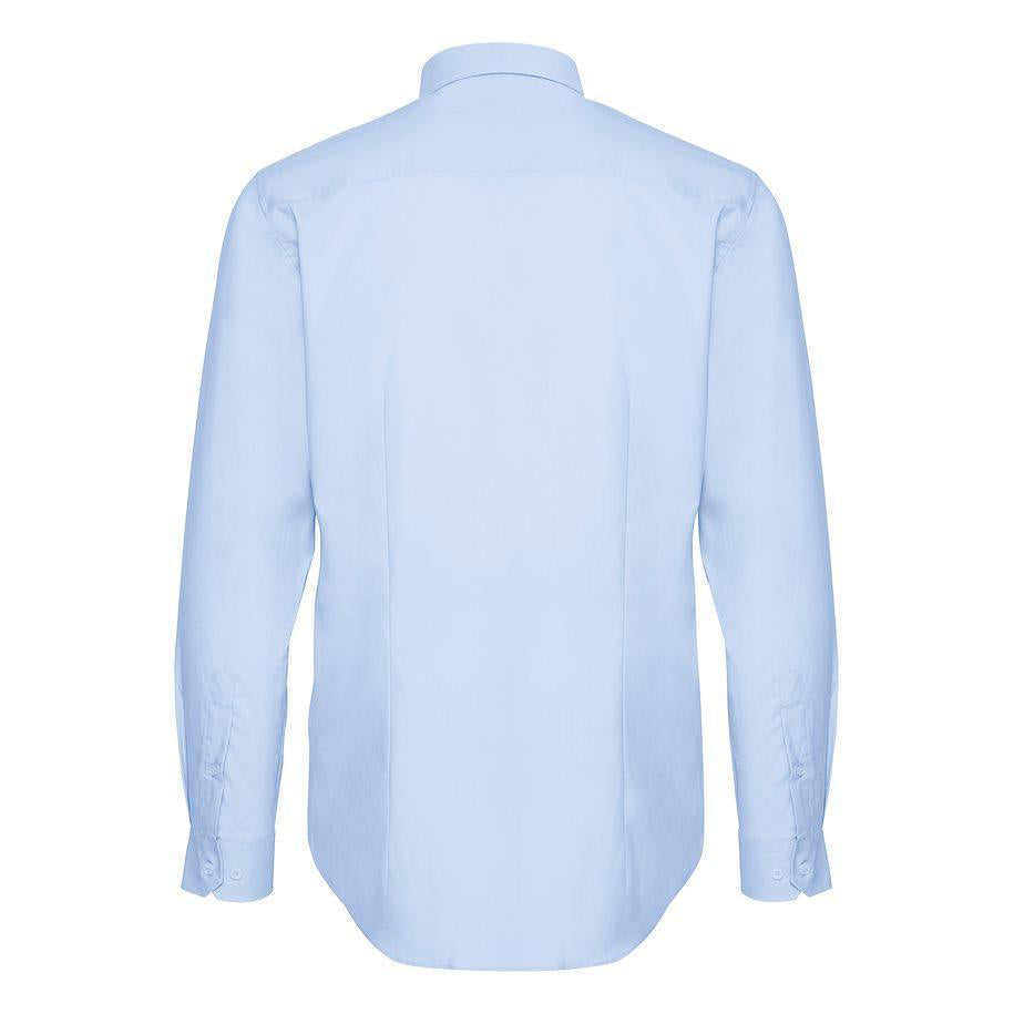 This model is a staple to any Man's wardrobe, a plain Blue shirt. Timeless clean styling with minimalist tonal buttons and a neat collar.