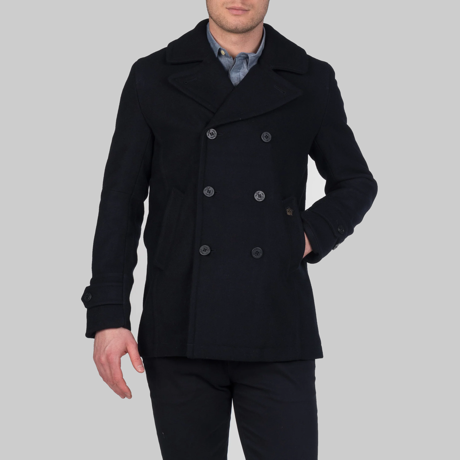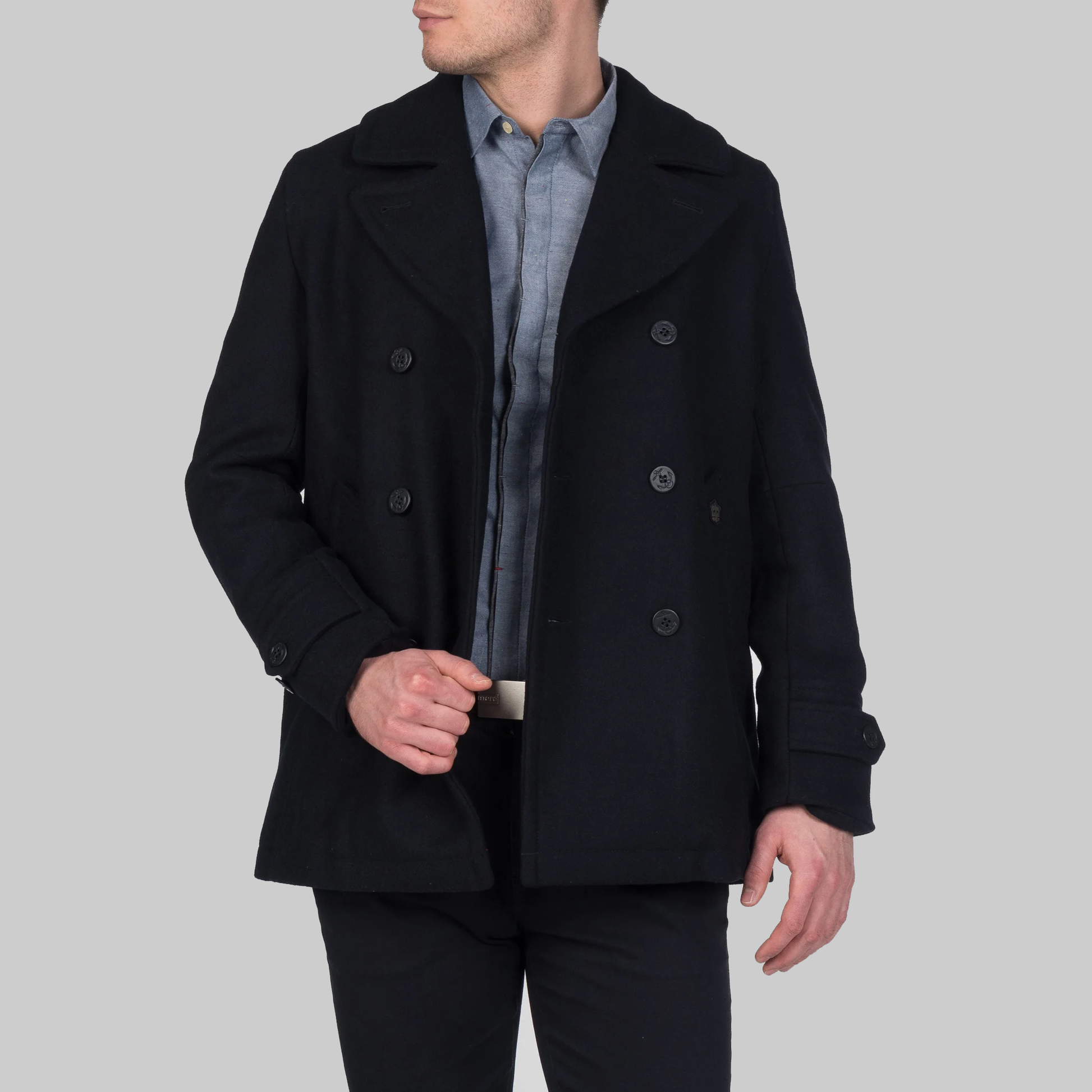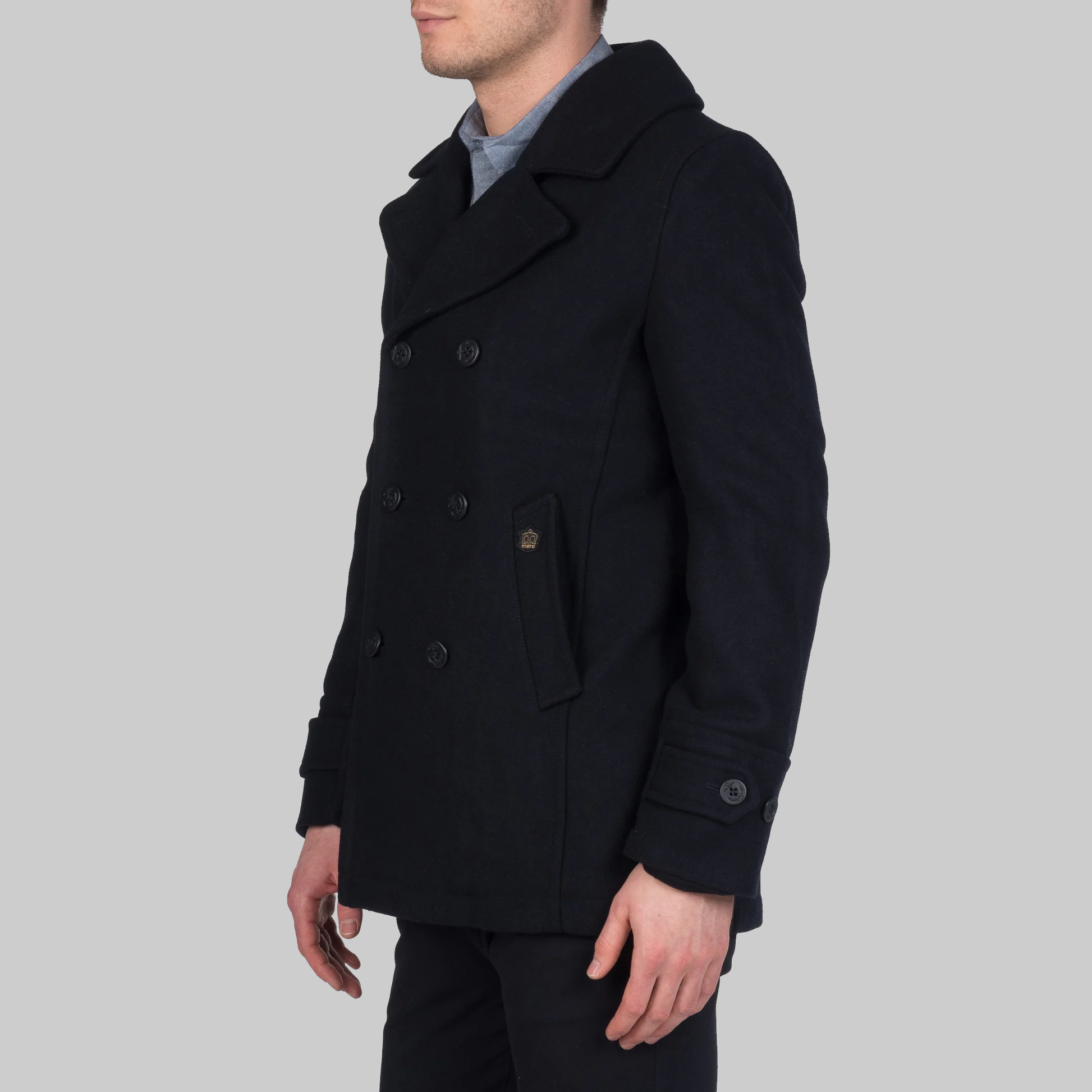 The "Doyle" Mod Pea Coat in Navy Blue by Merc London is available for purchase here at Urban Menswear.