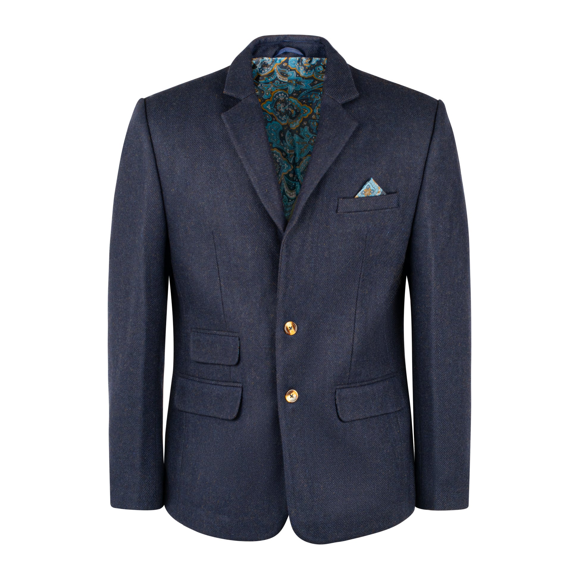 The perfect blazer for layering on top of a smart shirt or knitwear. Crafted with a thick exterior making it more suitable for winter months and finished with a Full Paisley Interior Lining and Free Matching Pocket Square.