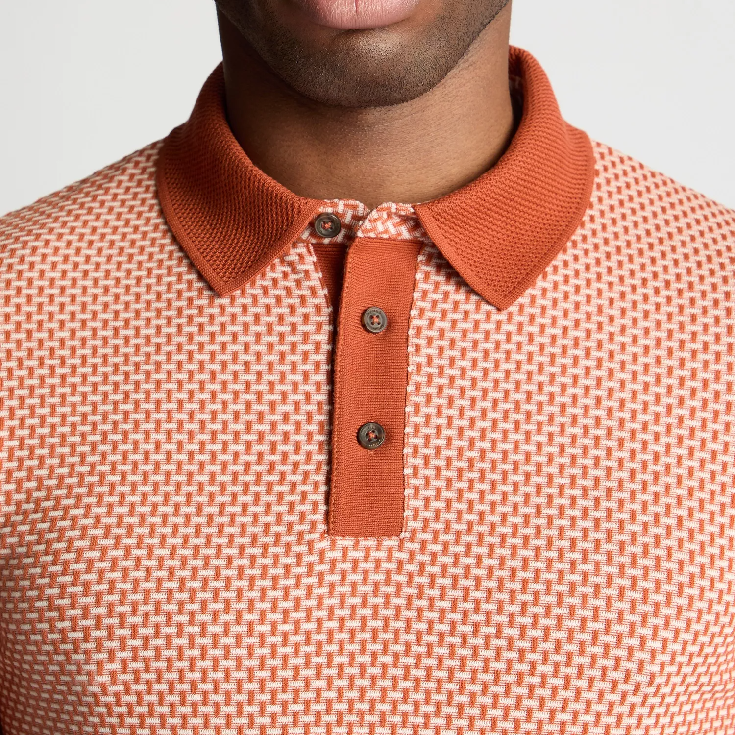 The Basket Weave Polo Shirt in Brick Orange by Remus Uomo is available for purchase here at Urban Menswear.