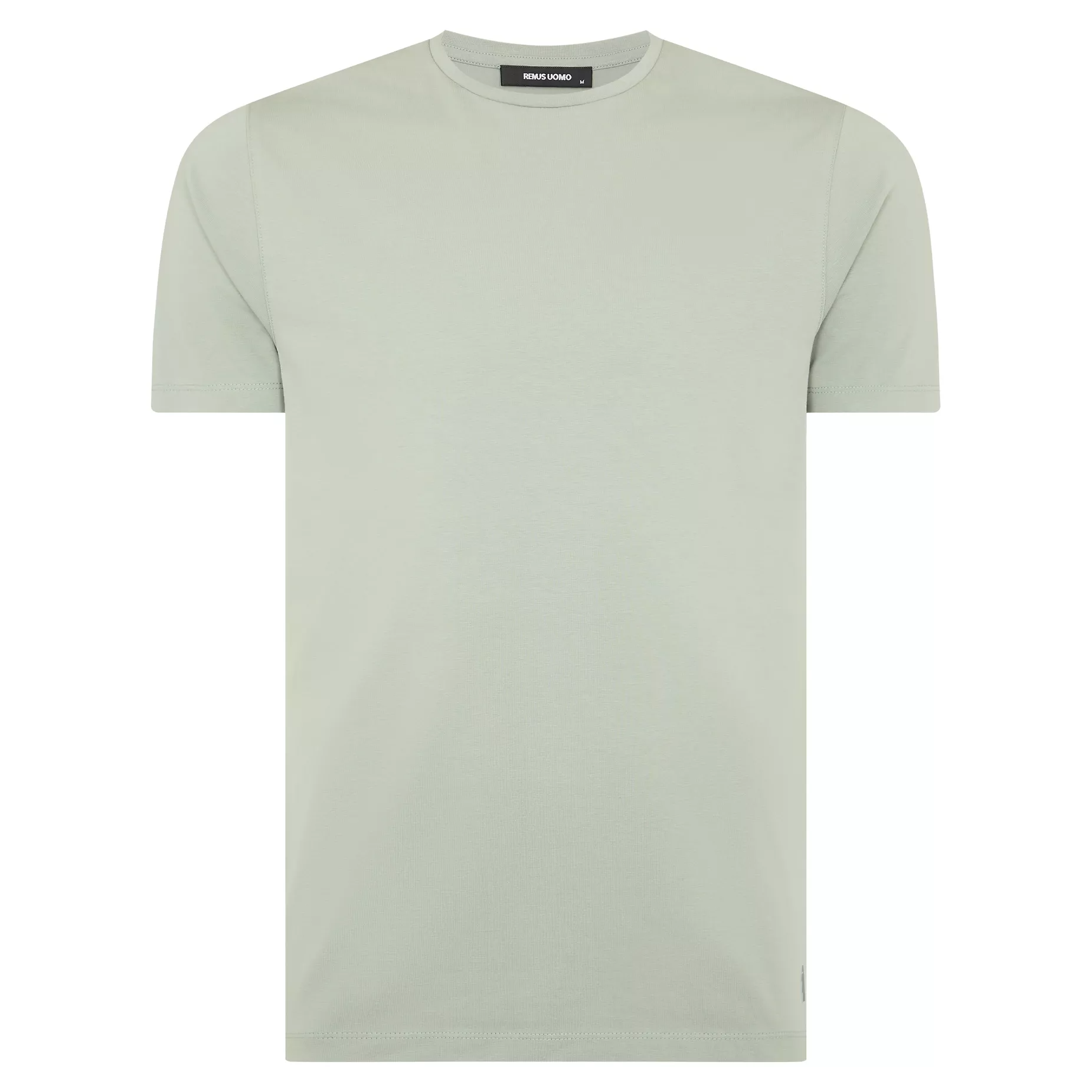 The Tapered Fit Cotton T-Shirt in Light Green (Sage) by Remus Uomo is available for purchase here at Urban Menswear.