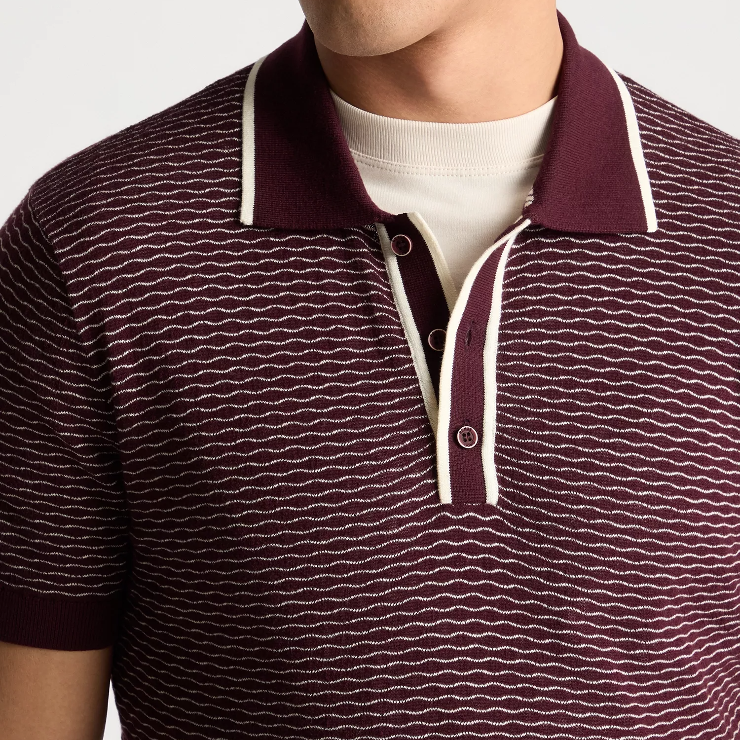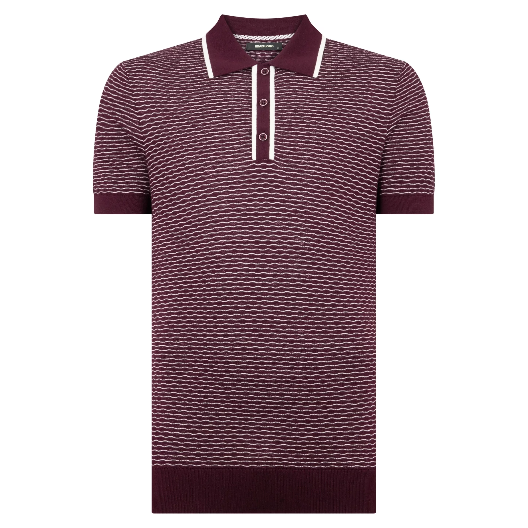 The Pattern Knitted Polo Shirt in Burgundy & Cream by Remus Uomo is available for purchase here at Urban Menswear.