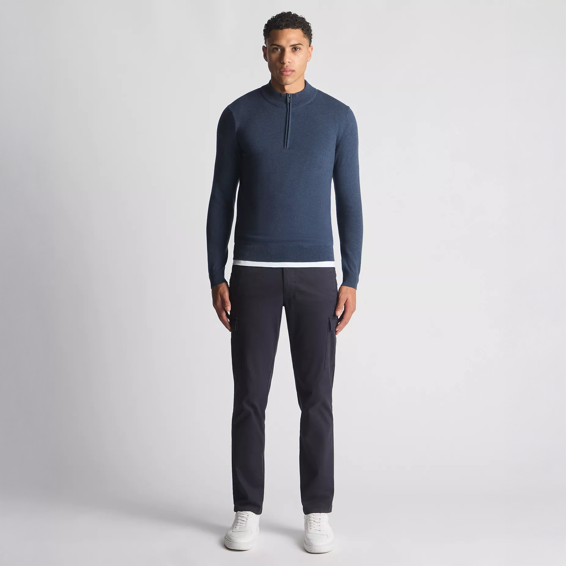 A wardrobe must have for layering some tonal colours into smart casual outfits. Crafted from a soft cotton knit in tapered fit and finished with a 1/4 zip and subtle mock neckline.