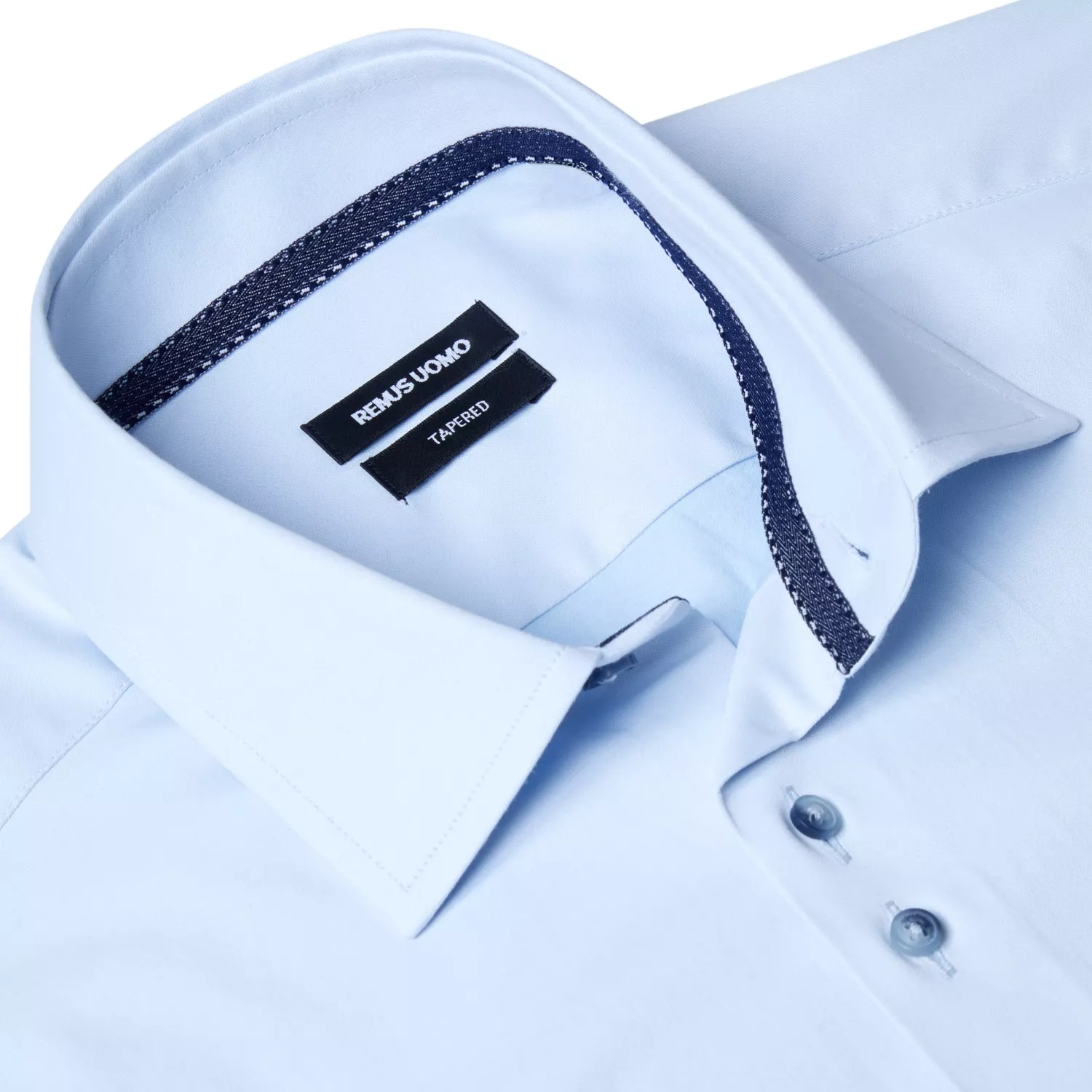 The Tapered Fit Shirt in Sky Blue by Remus Uomo is available for purchase here at Urban Menswear.