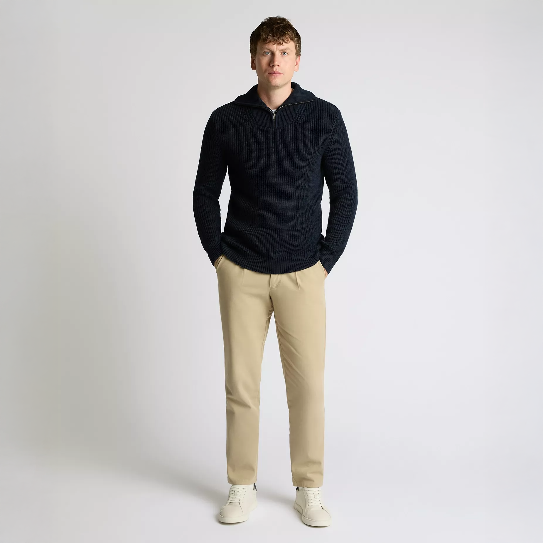 The Zip Neck Knitted Sweater in Navy Blue by Remus Uomo is available for purchase here at Urban Menswear.