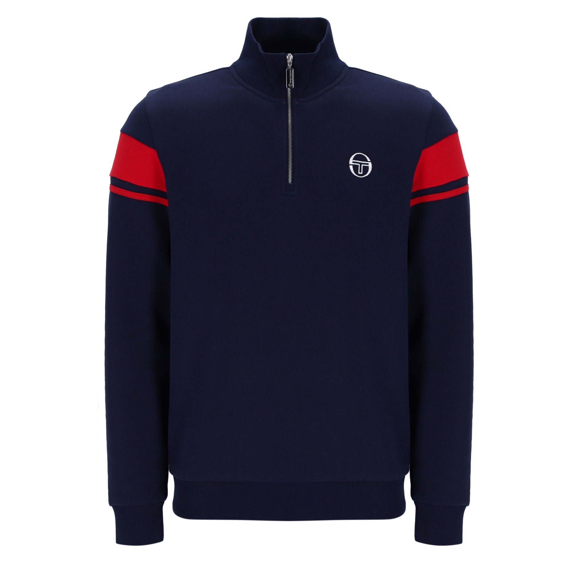 The "Damarindo" Quarter Zip Jumper in Navy Blue and Red by Sergio Tacchini is available for purchase here at Urban Menswear.