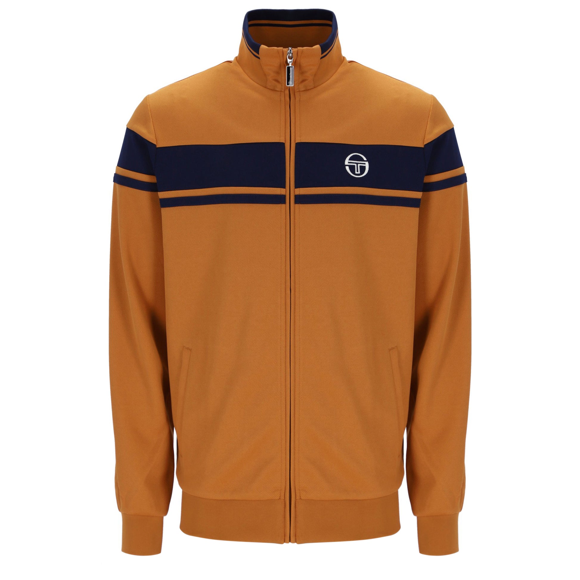 The "Damarindo" Track Top by Sergio Tacchini in Pumpkin Brown & Navy is available for purchase here at Urban Menswear.