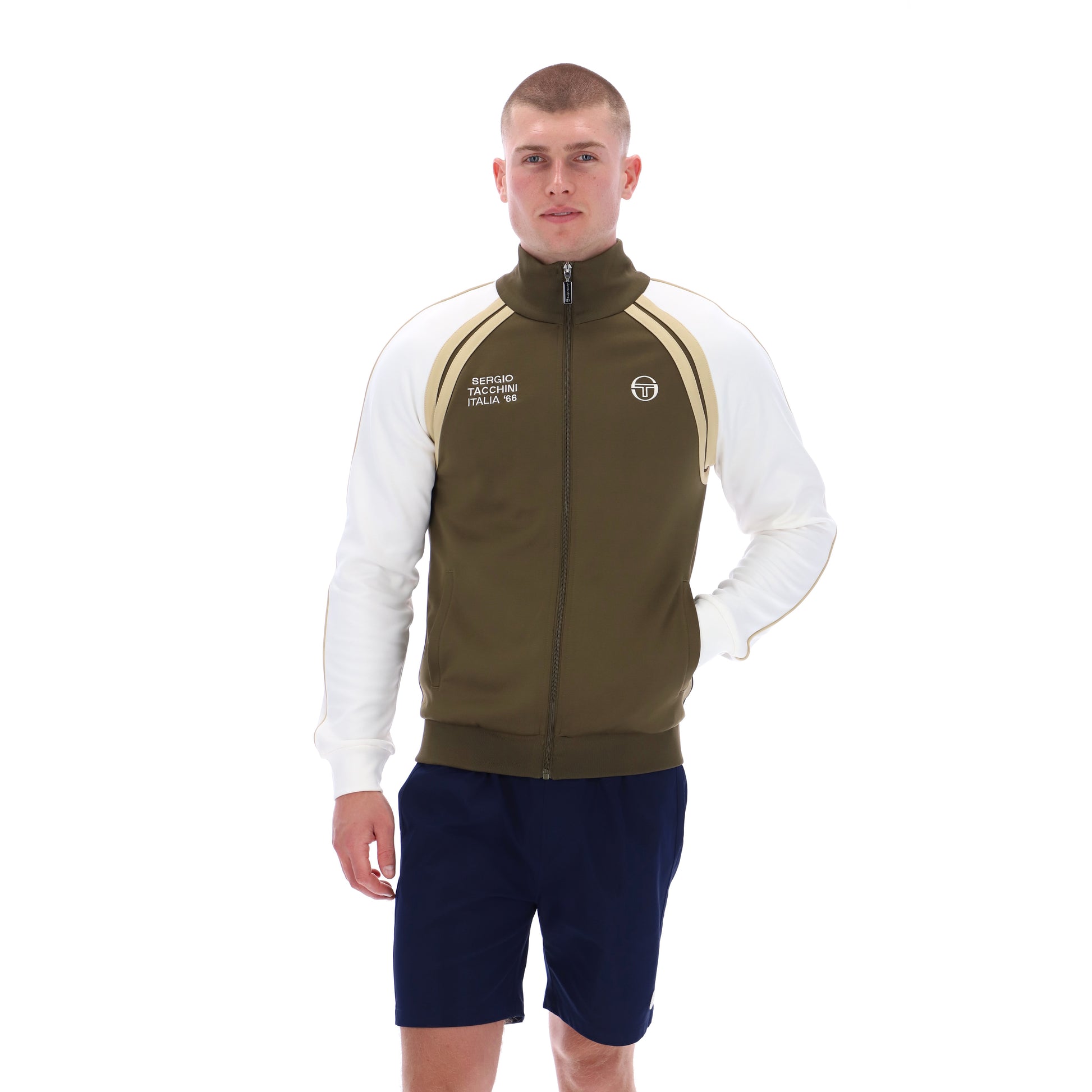 The "Ghibil Davis" Track Top in Olive Green & White by Sergio Tacchini is available for purchase here at Urban Menswear.