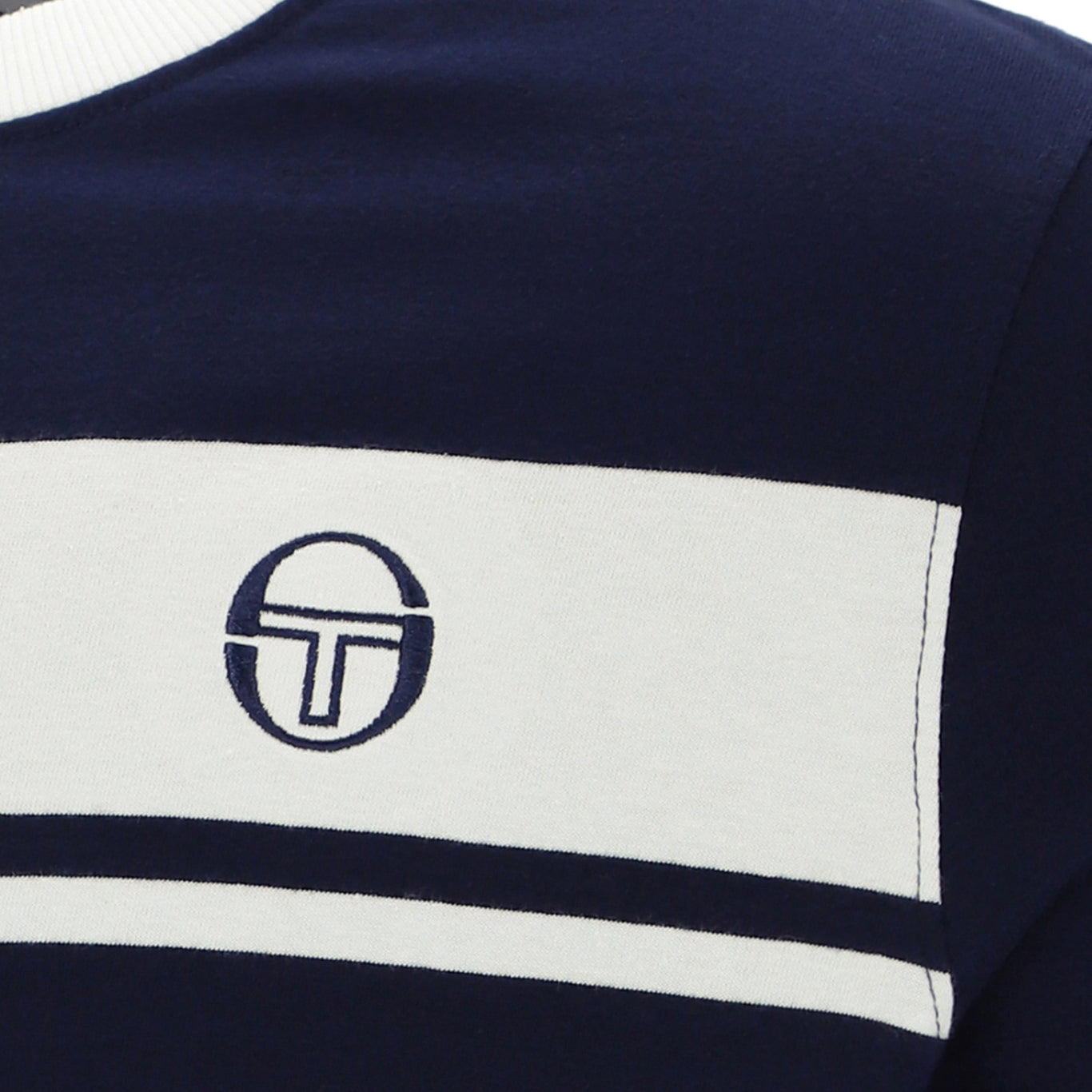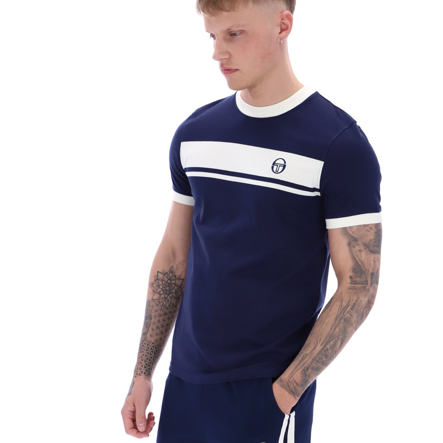 The Sergio Tacchini "Master" T-Shirt in Maritime Blue (Navy) & White is available for purchase here at Urban Menswear.
