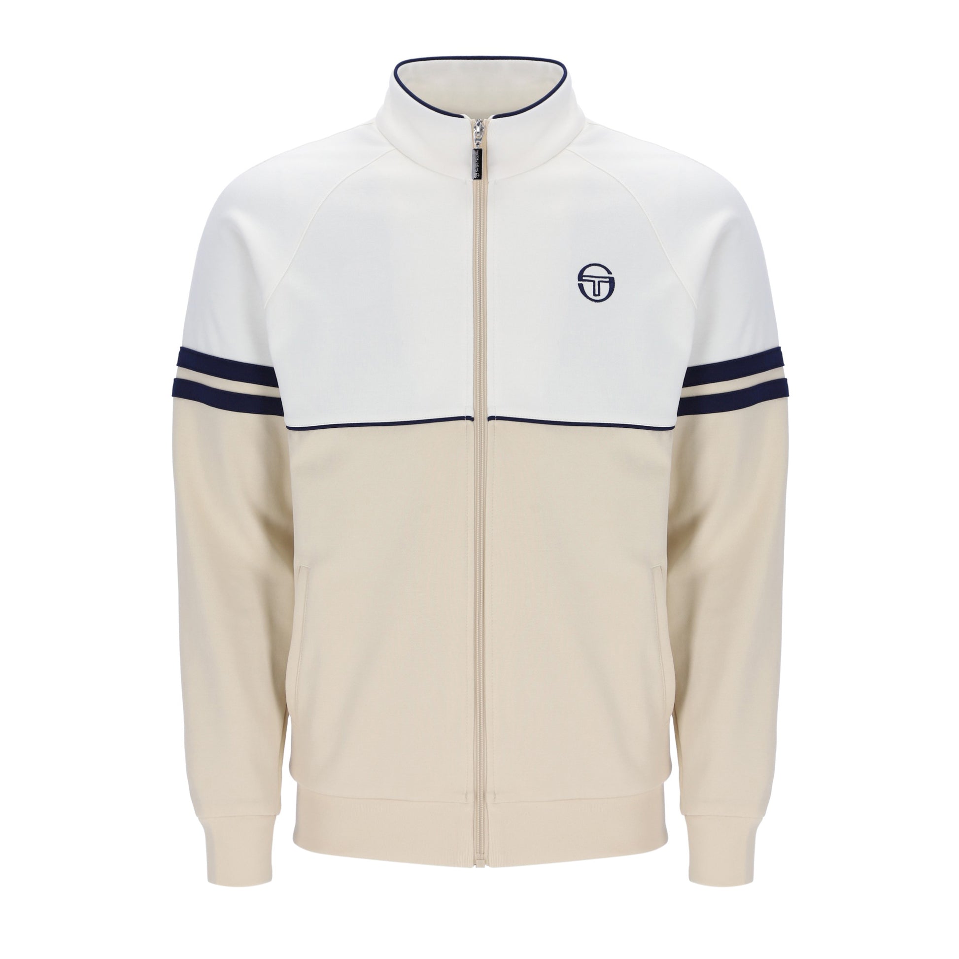 The 80's Casual "Orion" Track Top in Sand Beige, Cream & Navy by Sergio Tacchini has landed and is available for purchase here at Urban Menswear.