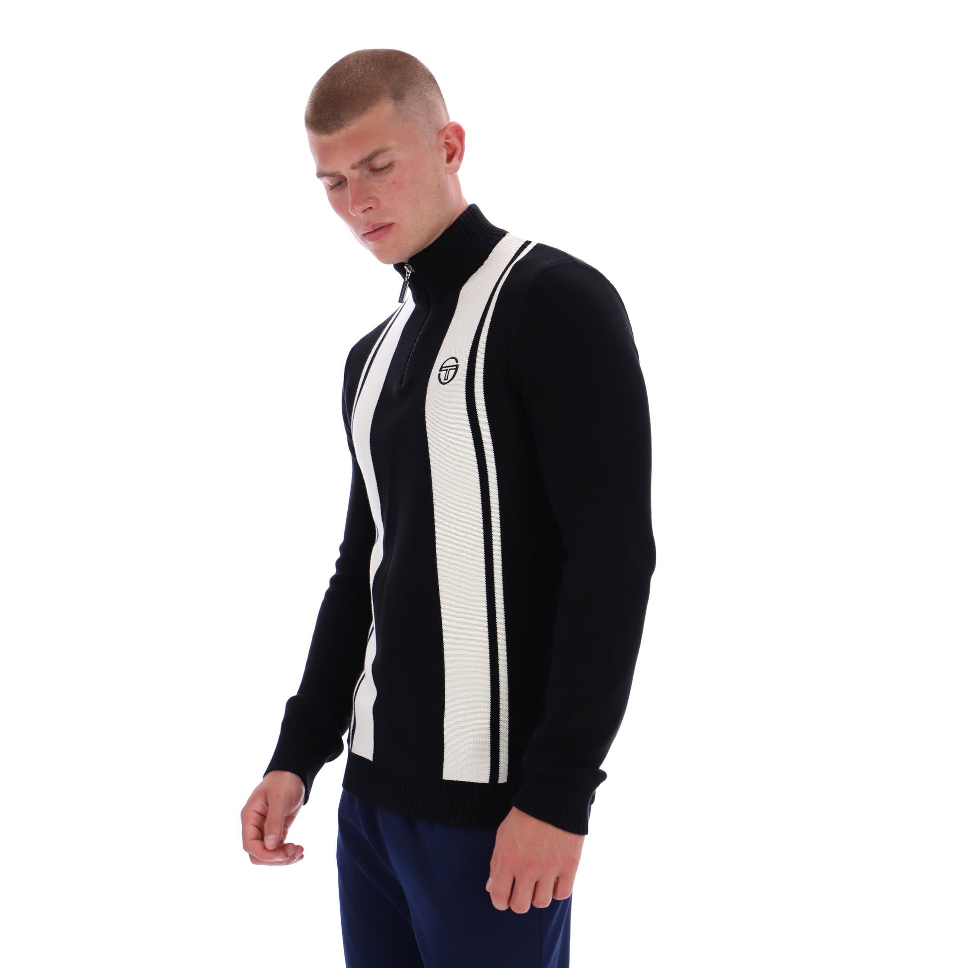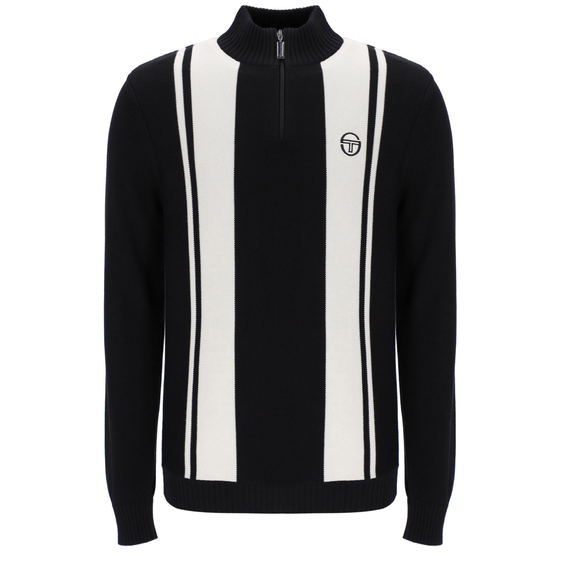 The "Youngline" Quarter Zip Jumper in Black and White by Sergio Tacchini is available for purchase here at Urban Menswear.