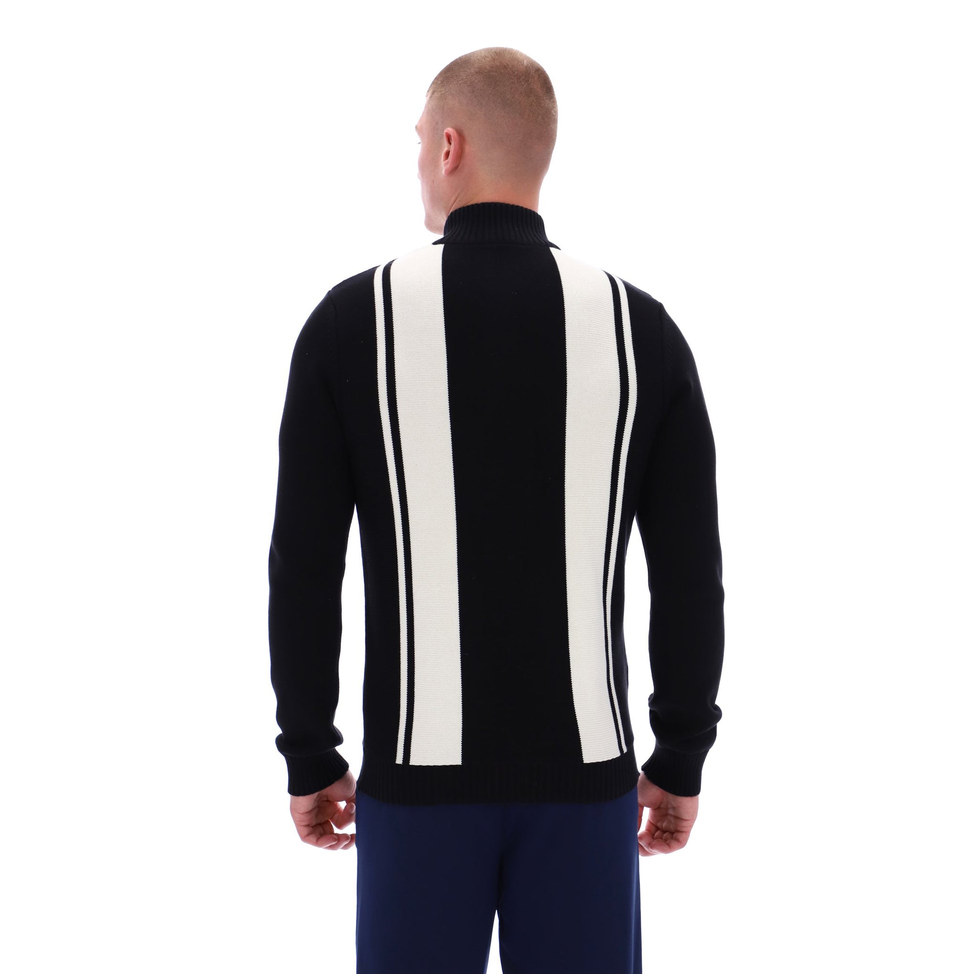 Sporting the iconic thick and thin striped vertically on the torso and rear, in the popular quarter zip silhouette. Crafted from a mid-weight knitted cotton and finished with ST branded chest and zip pull.