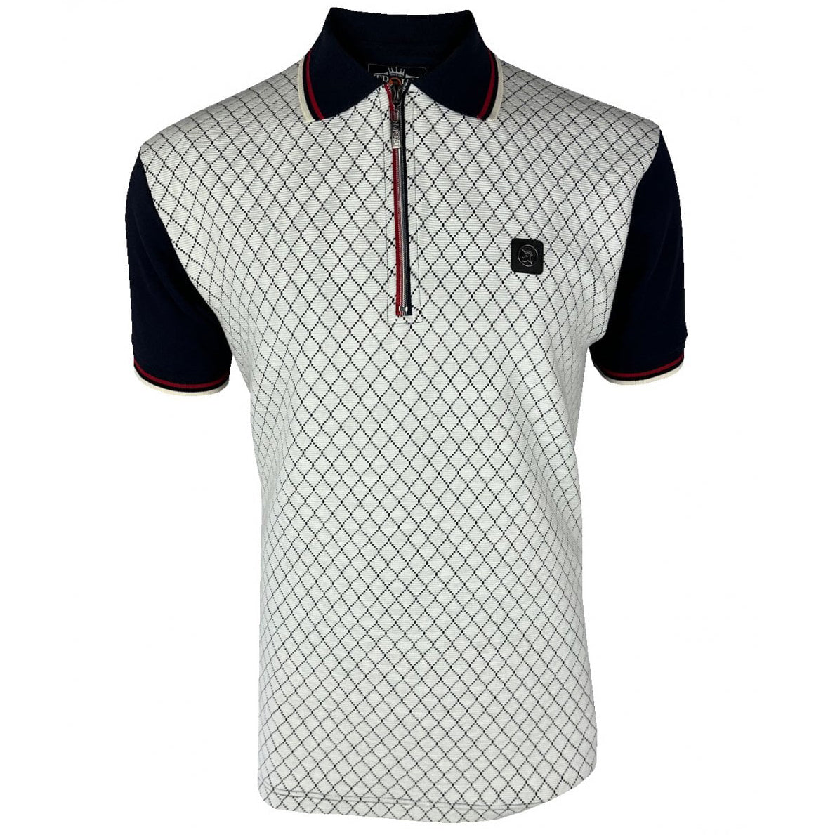 The Trojan "Ottoman" Panel Polo Shirt in Navy Blue & White is available for purchase here at Urban Menswear.