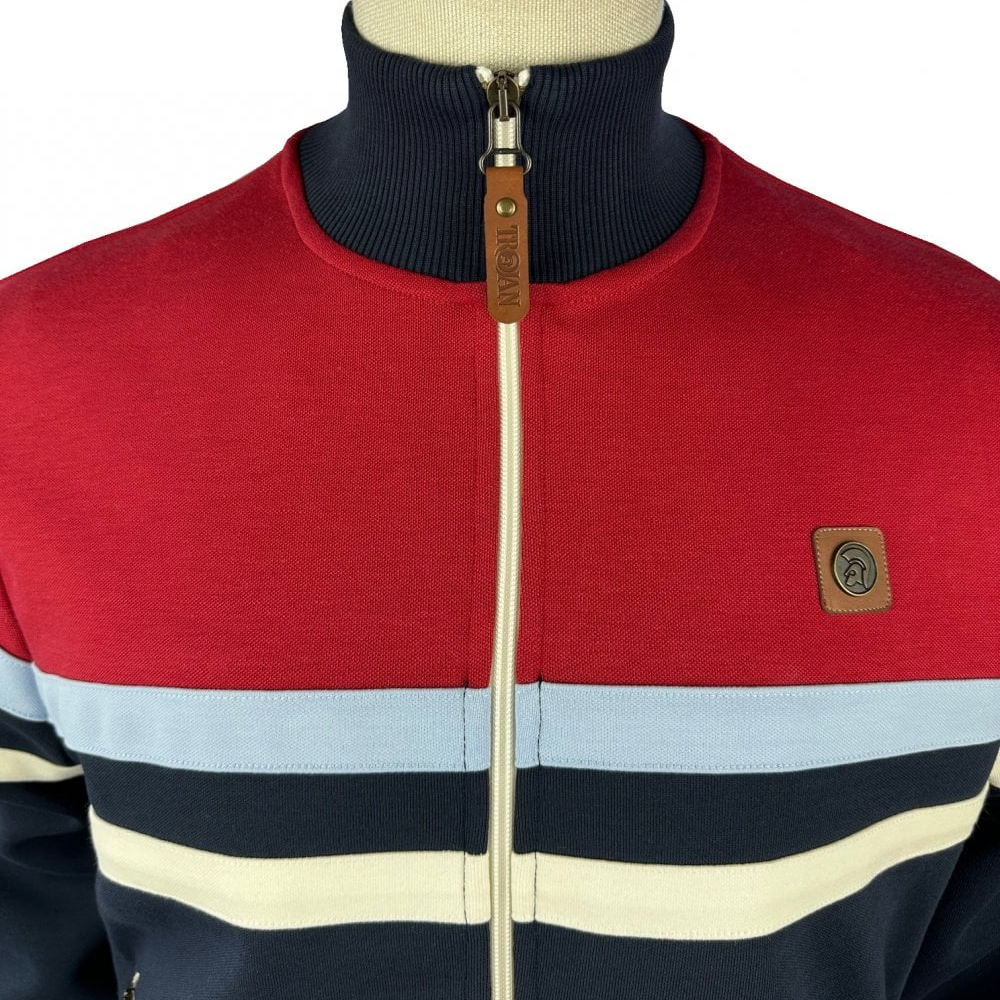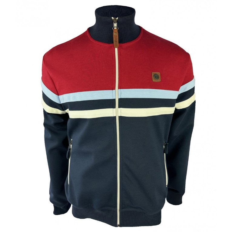 The "Stripe Panel" Track Top in Navy Blue & Red by Trojan Records is available for purchase here at Urban Menswear.