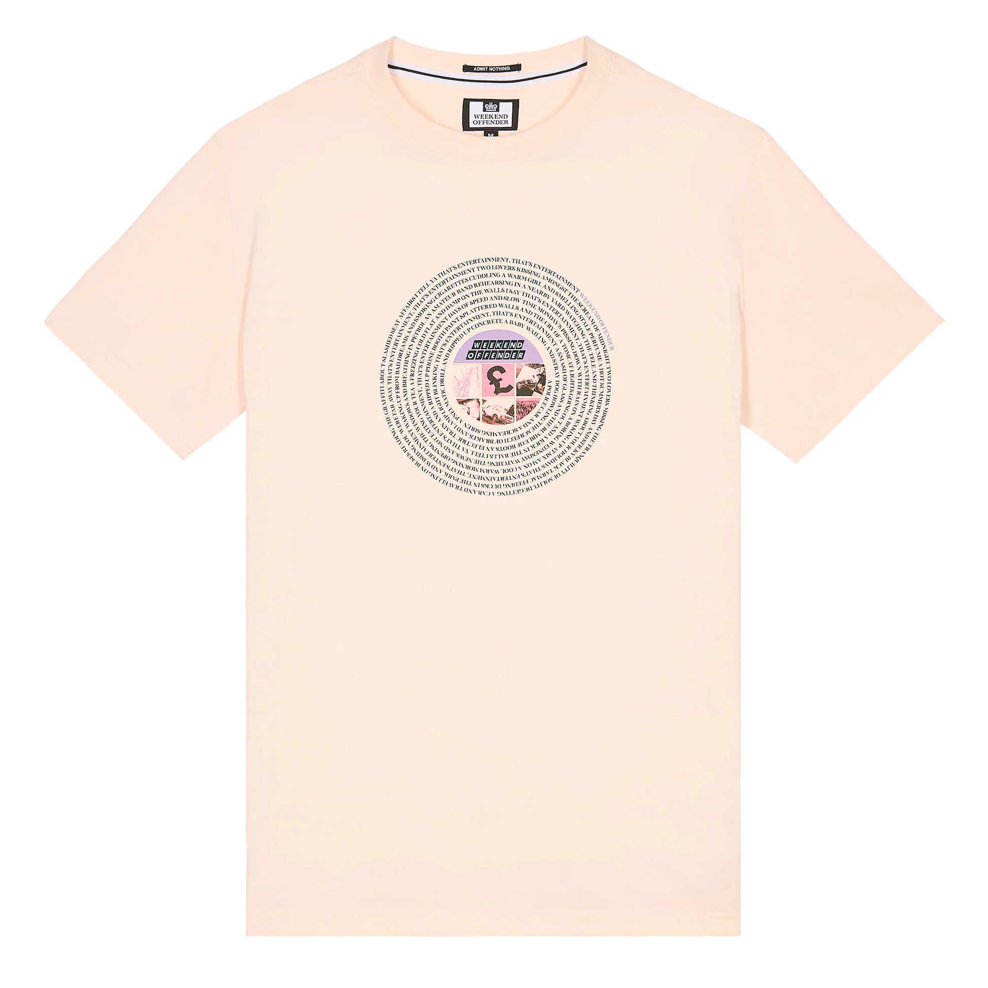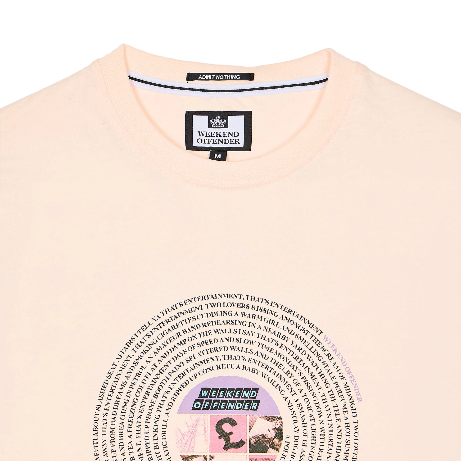 The "Entertainment" Graphic T-Shirt in Alabaster (Peach) by Weekend Offender is available for purchase here at Urban Menswear.