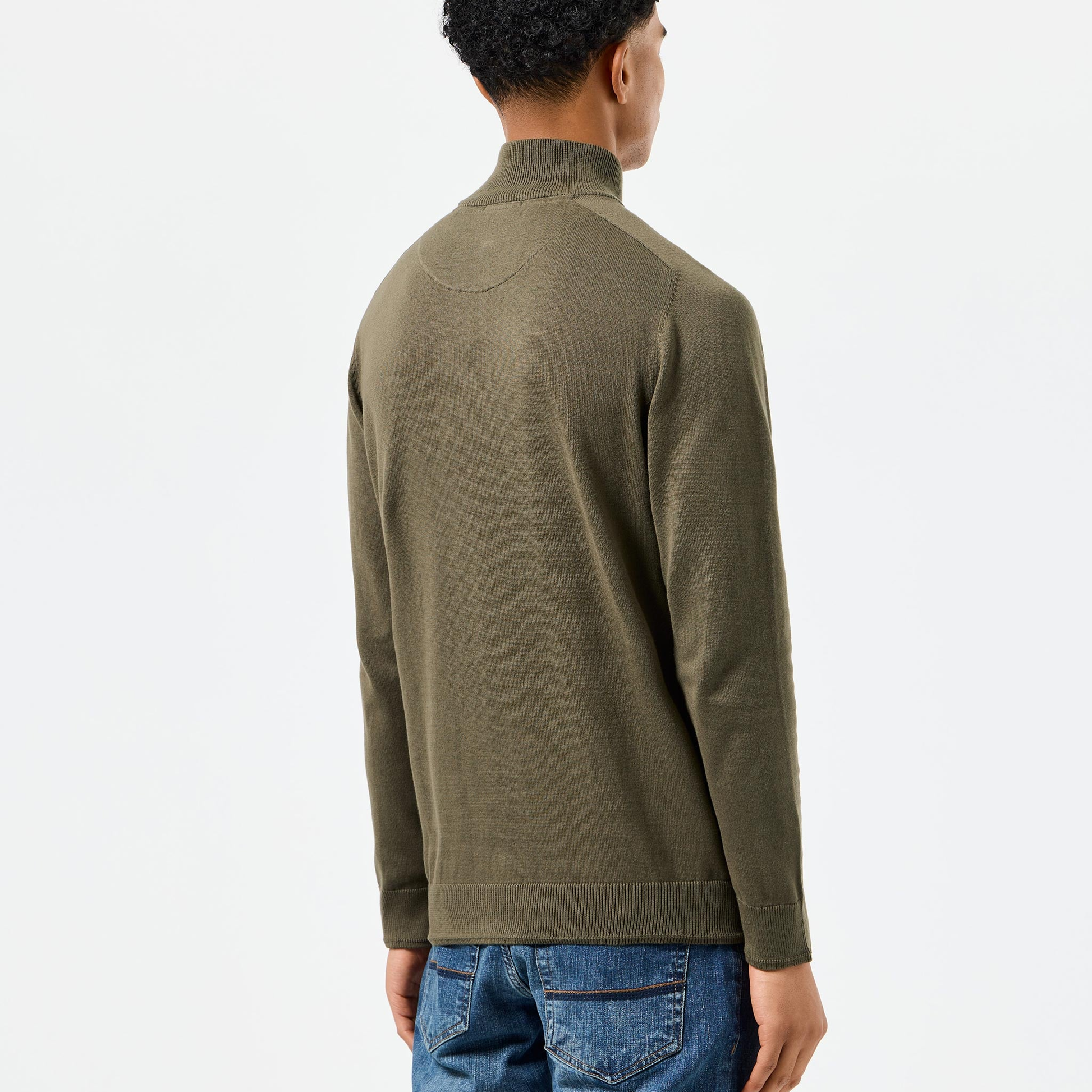 The Weekend Offender "Pierre" Knitted Quarter-Zip Sweatshirt in Castle Green is available for purchase here at Urban Menswear.