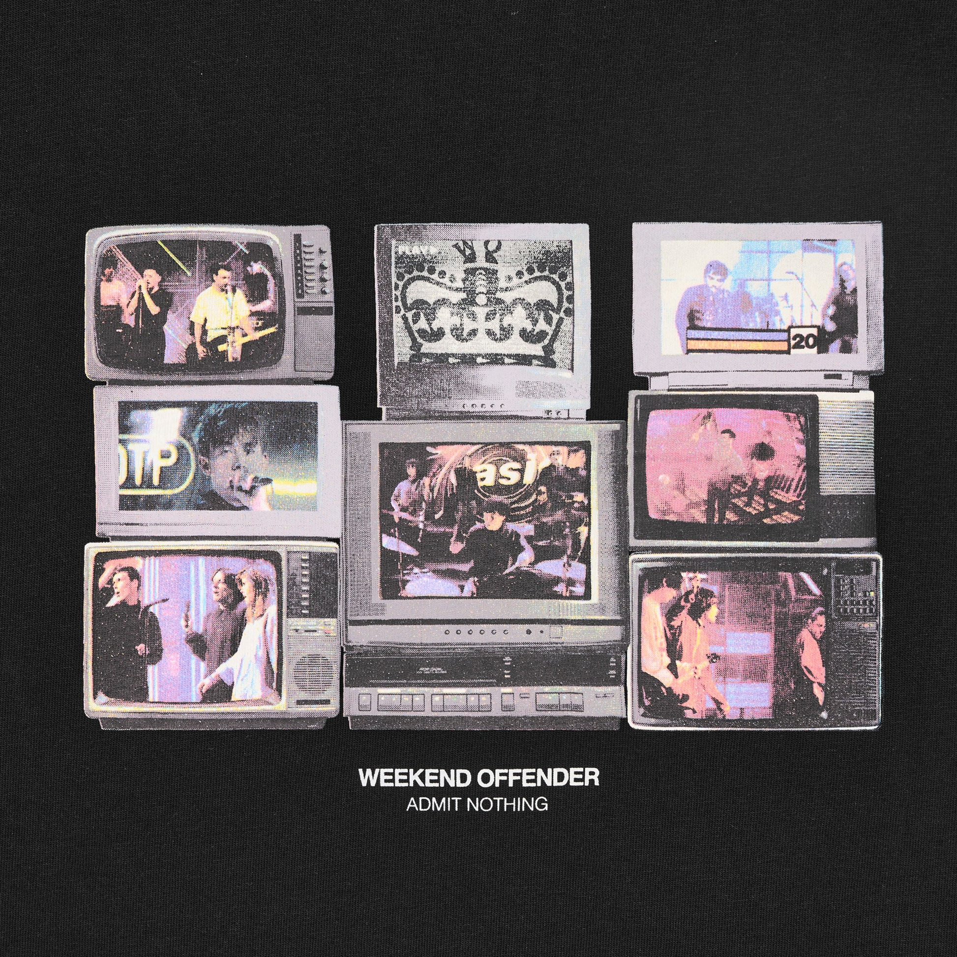 Featuring a graphic design of retro TV's showing iconic scenes from some of our favourite bands. Constructed from 100% Cotton with short sleeves & crew neckline.